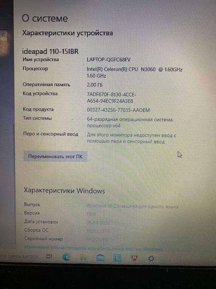 Ноутбук Lenovo IdeaPad 110-15IBR Рабочий, всё включается Есть небольшие подвисания (нужно обновить/почистить) Подойдёт для учёбы, фильмов, работы Зарядка, мышка в комплекте Цена: 80 000 тг (торг) Артикул: 549271