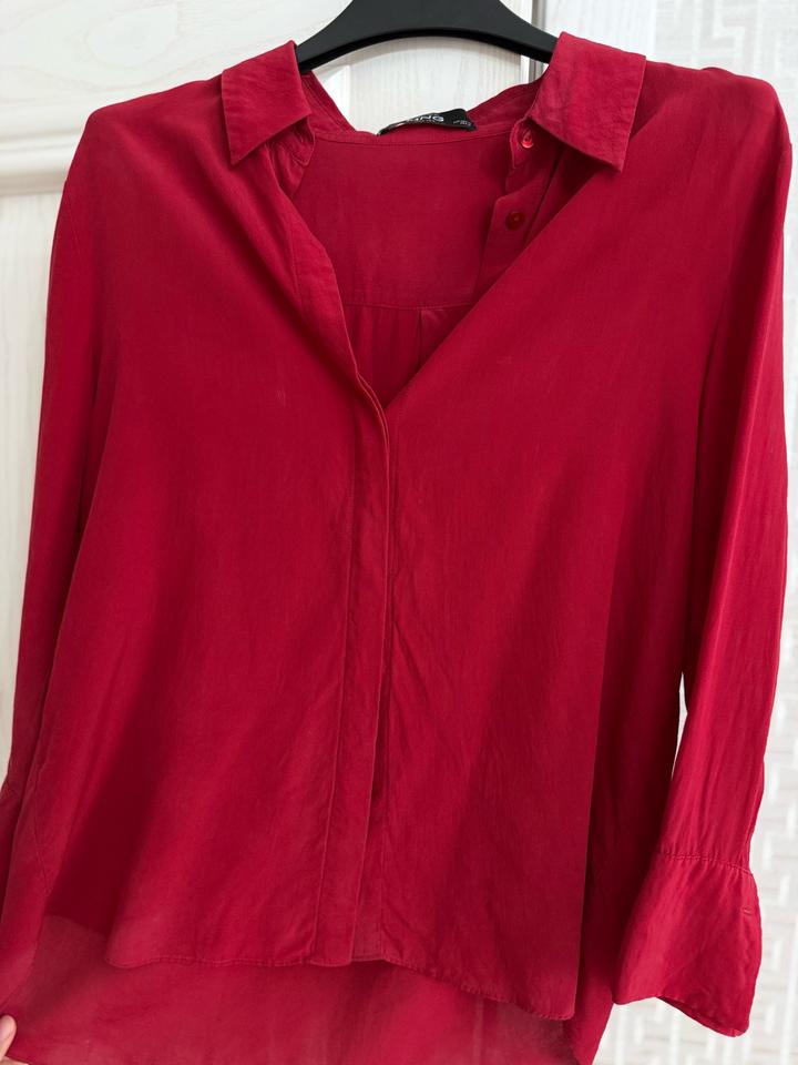Новая рубашка от mango selection из 100 процентного шелка, в красивом бордовом цвете, камера цвет точно не передает, рубашка новая не носилась, рукава чуть укороченные, размер М Ткань не плотная очень приятная и легкая, для торга напишите мне🫶 Артикул: 549277
