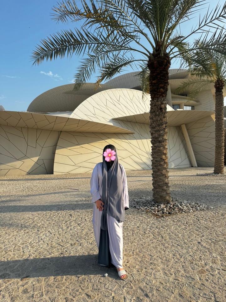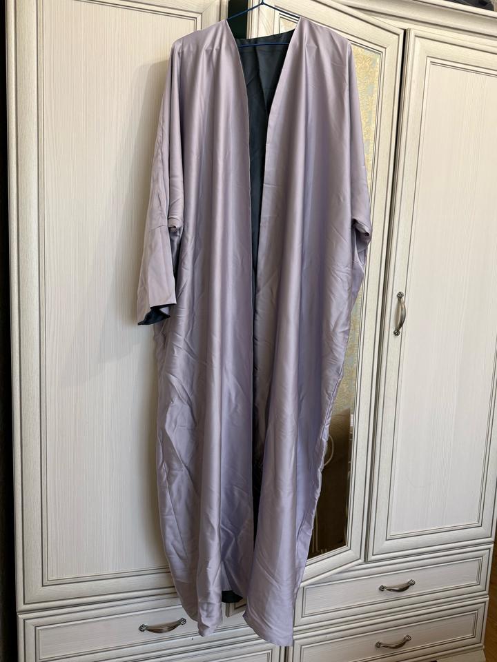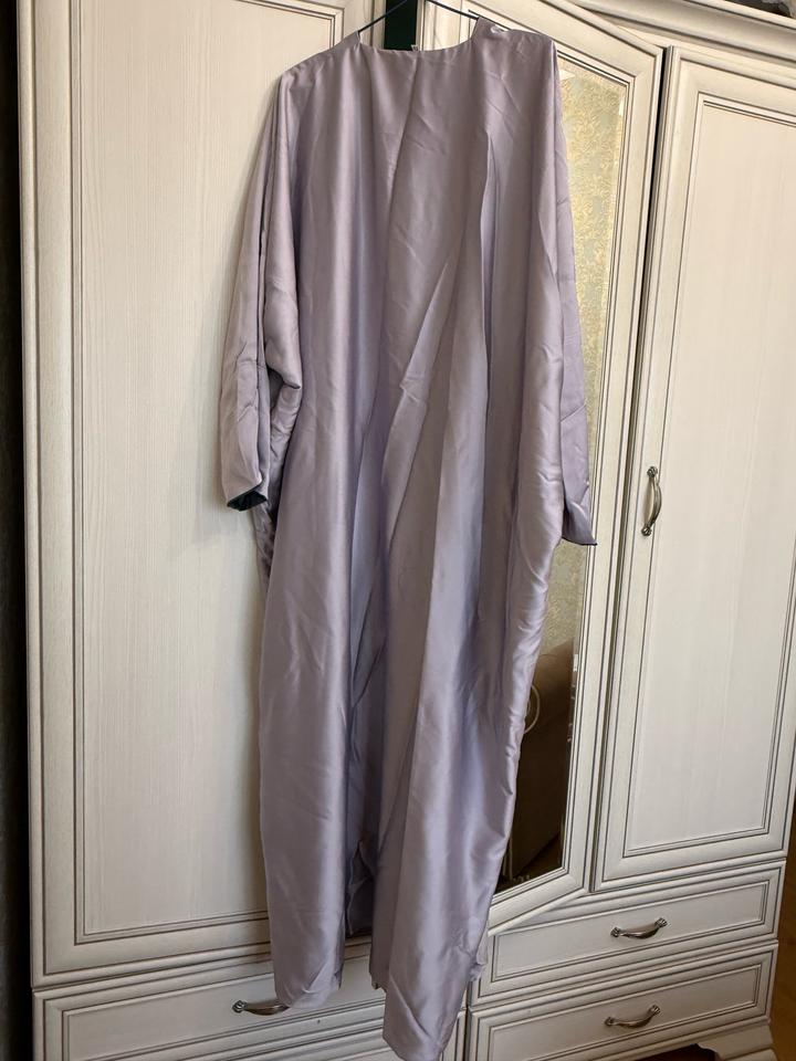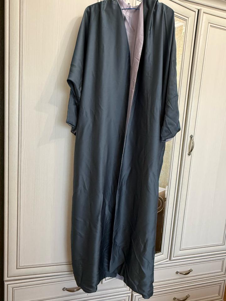 Покупала в Катаре, надевала всего на один час. В комплекте идет платочек темно серого цвета. Абайя двухцветная. Артикул: 549337