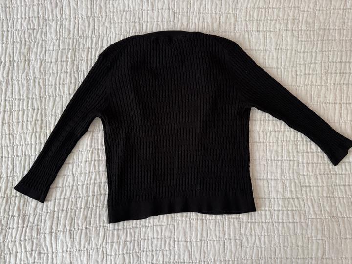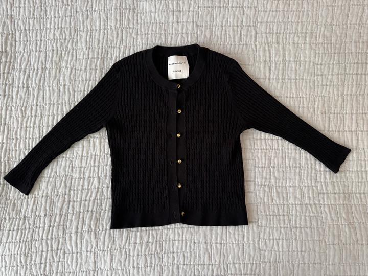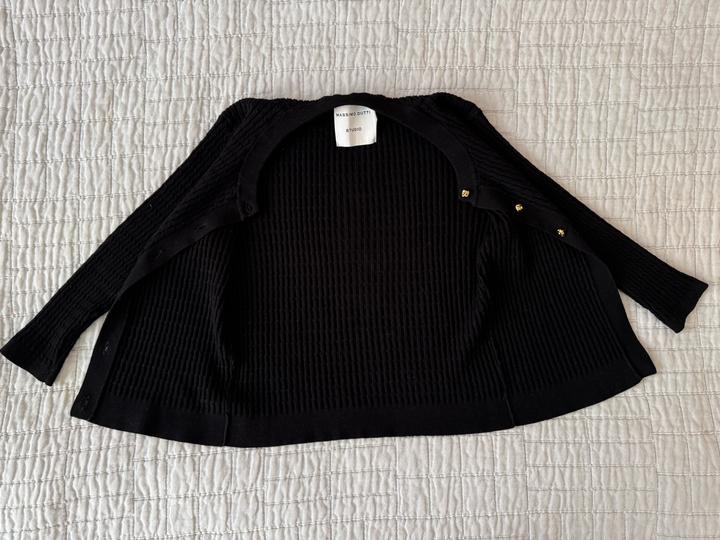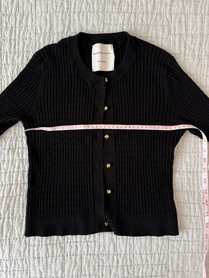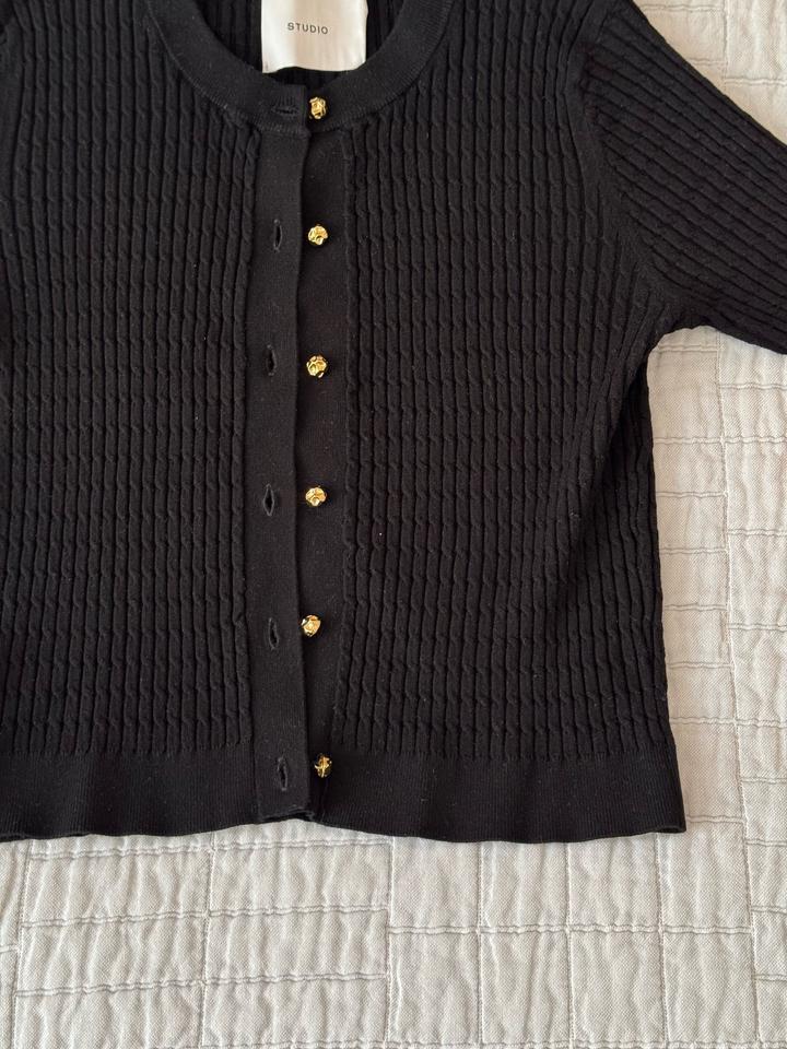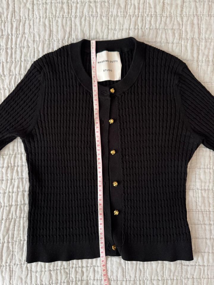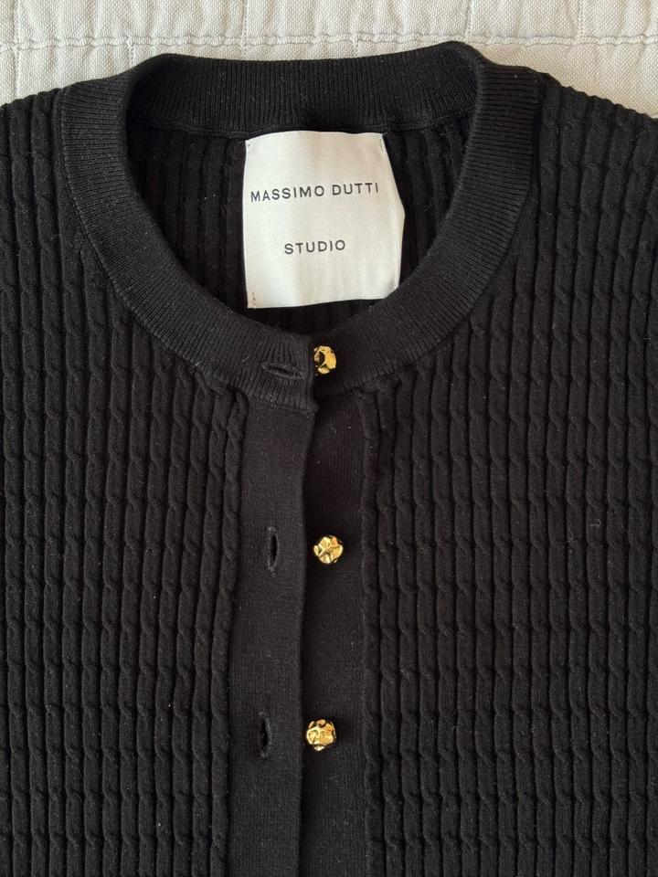 Черный кардиган из премиум линейки Massimo Dutti. Тонкий трикотаж, немного тянется, красивые пуговицы, металл не чернеет. Артикул: 549369
