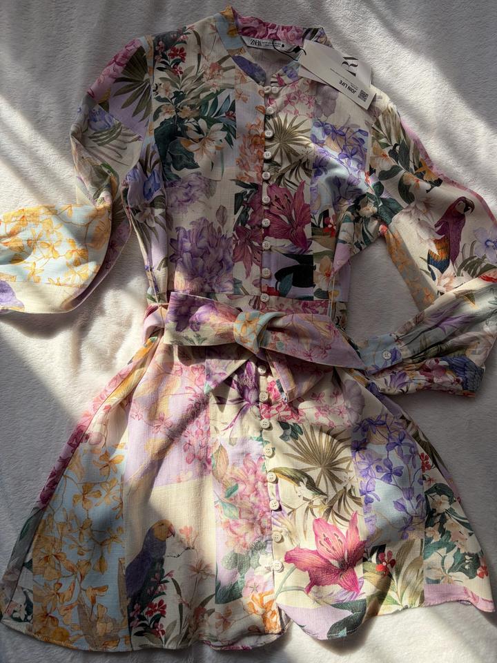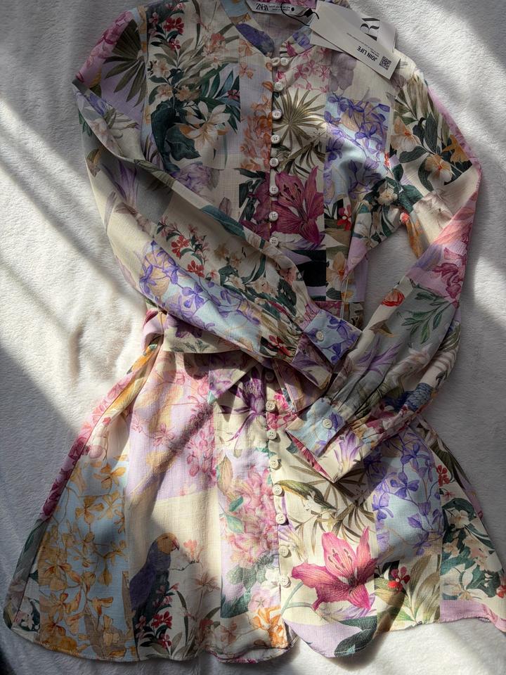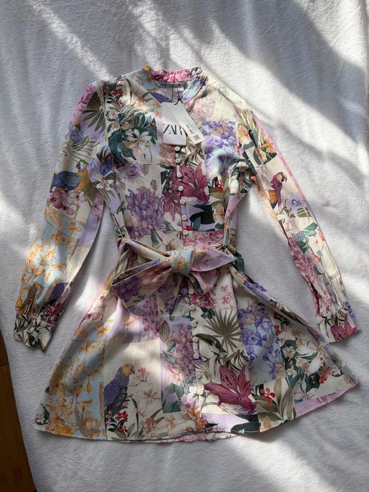 Новое платье Zara в цветочном принте. Размер XS, но подойдёт и на S. Артикул: 549400