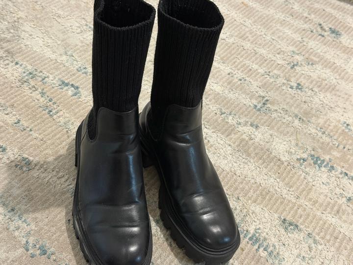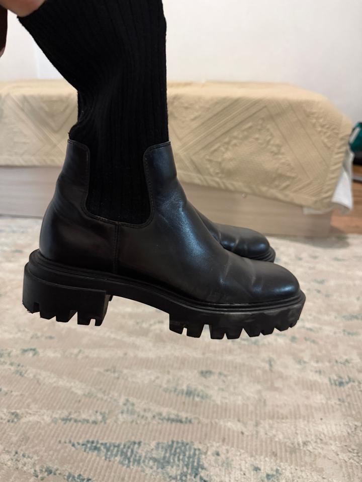 Черные кожаные ботинки от Zara, 3+7### ### ## ##дин сезон отдам за 7500 Артикул: 549480