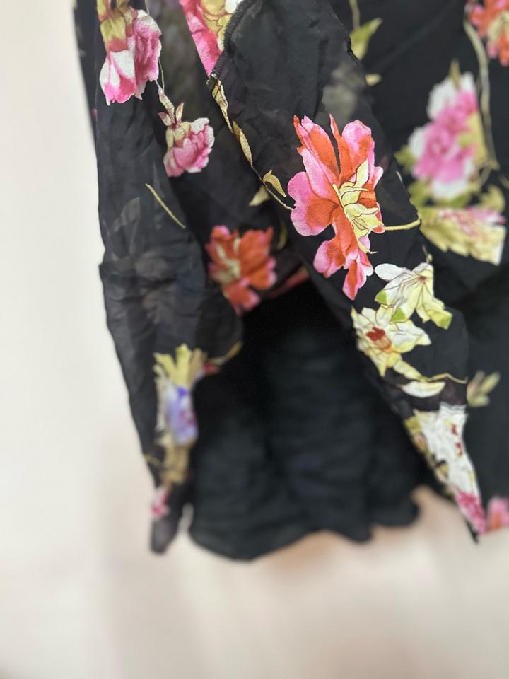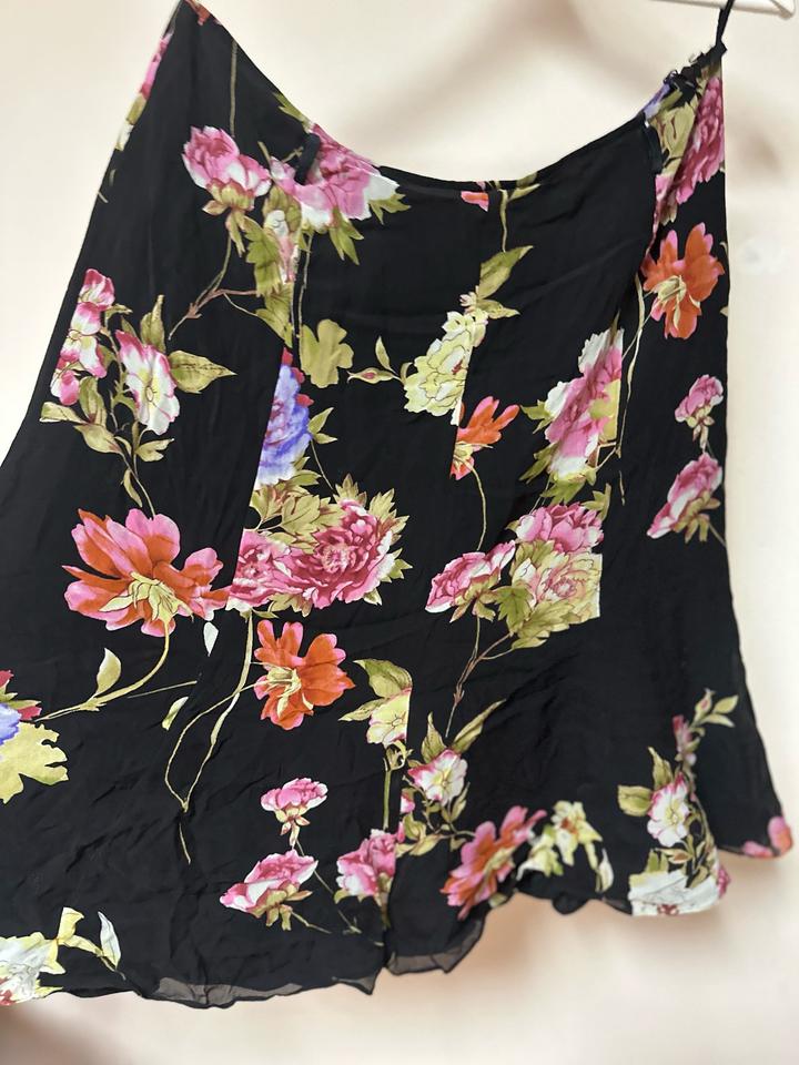 Лёгкий, струящийся натуральный шёлк с деликатным цветочным принтом на глубоком чёрном фоне. Силуэт свободный, летящий — красиво двигается при ходьбе. Романтичное настроение с лёгким налётом 90-х. Идеальна для образов в стиле quiet luxury, romantic vintage, old money summer. Та самая вещь, которая выглядит дорого без лишних логотипов. На размер примерно M-L Артикул: 549673