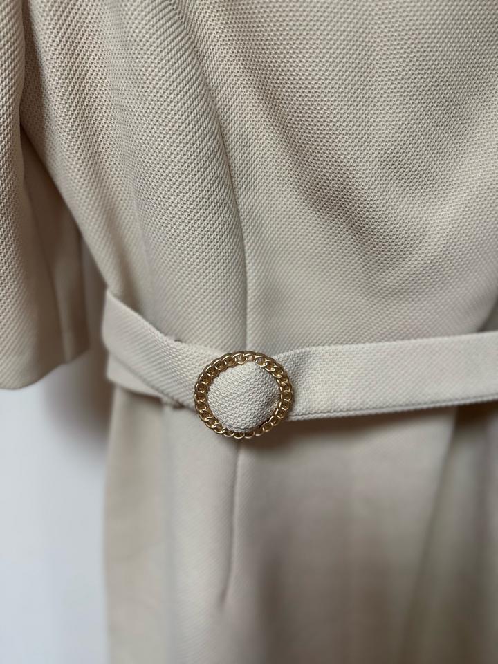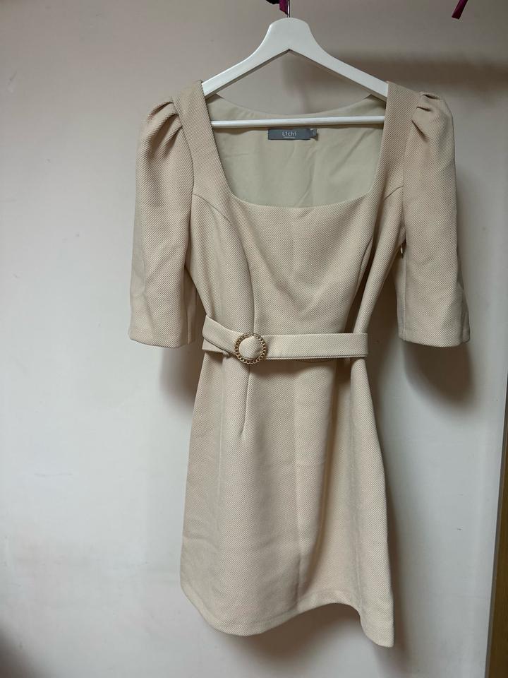 Элегантное платье в оттенке нежного бежа. Структурный крой красиво подчёркивает фигуру. Акцент на талии за счёт пояса с декоративной пряжкой. Рукава с лёгким объёмом добавляют женственности. Квадратный вырез делает образ утончённым и дорогим. Идеально для: — свиданий — мероприятий — образов в стиле old money / minimal chic. Немного маломерит Артикул: 549689