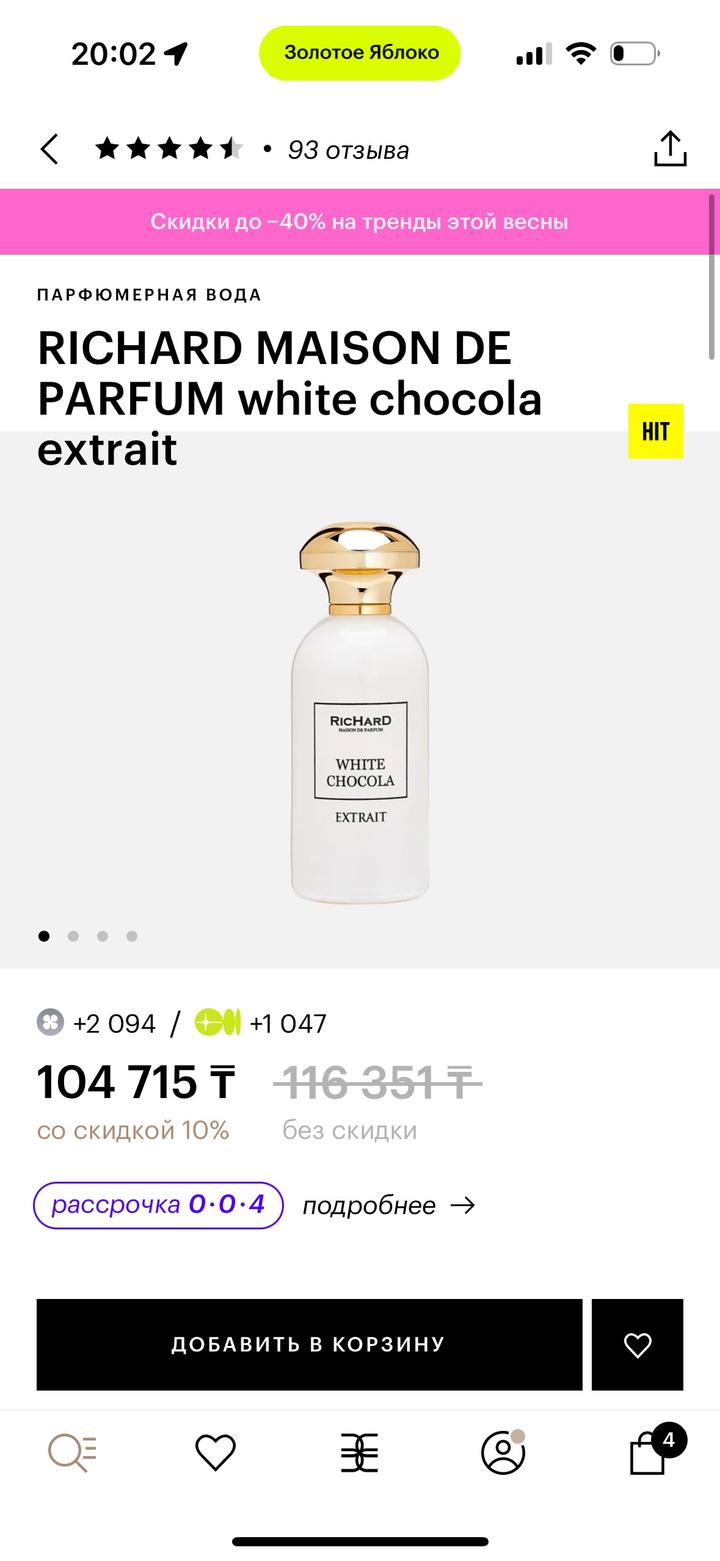 продаю парфюм Richard White chocola extrait подарили на день рождение, перепутали запах пшикала 3-4 раза покупала за 104К Артикул: 549691