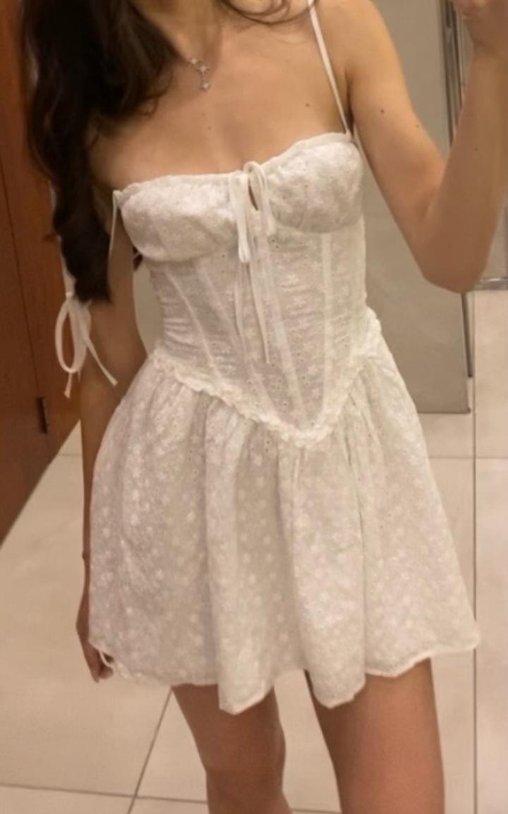 Продаю белое платье на корсетной основе с завязками сзади и на плечах Размер S, за счёт завязок можно регулировать, поэтому подойдёт и на XS. Очень красиво подчёркивает фигуру и создаёт лёгкий, нежный образ. Снизу есть подклад, поэтому не просвечивает и комфортно носится. Есть два небольших нюанса: на завязках сзади в нескольких местах немного торчат нитки (заводской момент) и небольшое пятнышко от тонального средства так же на завязке сзади. В носке этого вообще не заметно Артикул: 549826