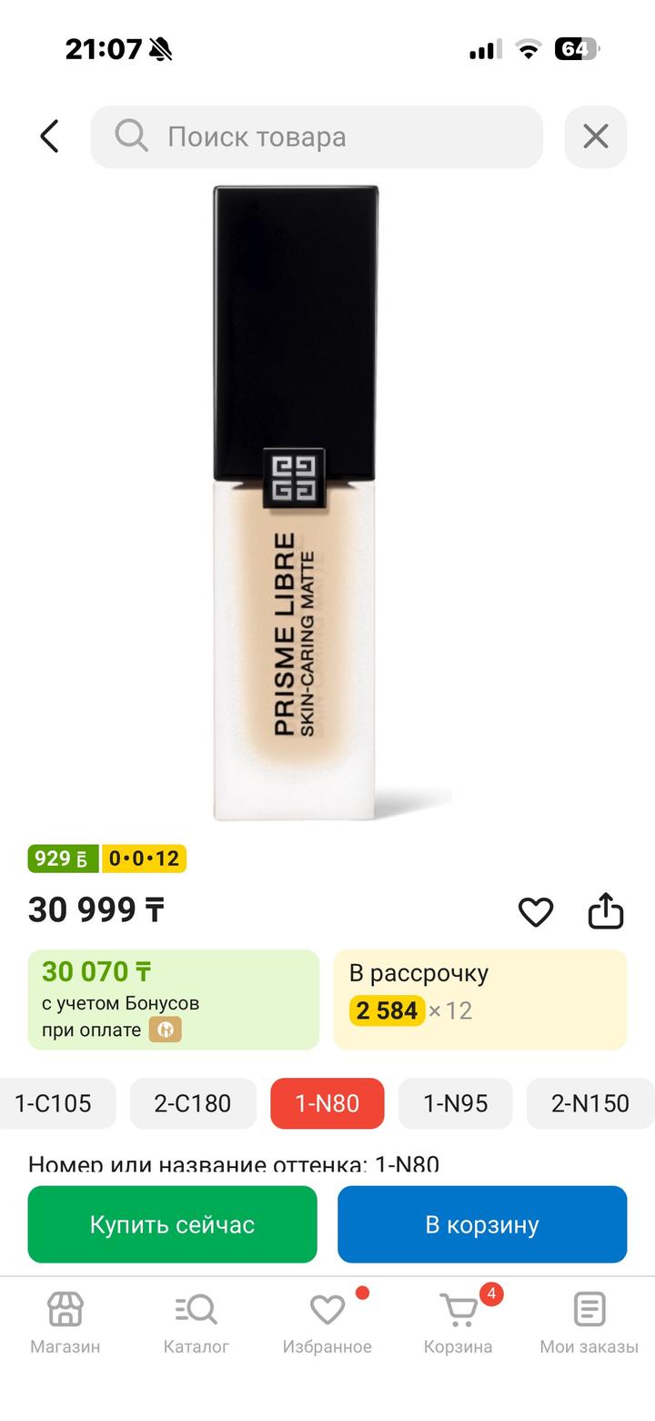 GIVENCHY Prisme Libre Skin-Caring Matte тональный крем 1-N80 30 мл Артикул: 549845