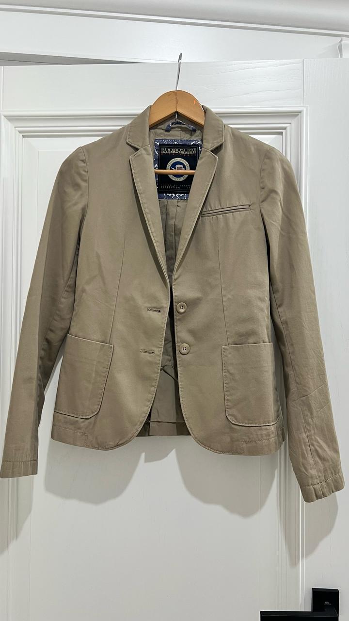 Продается пиджак Бренда Napapijri. Ткань 100%хлопок, на подкладе, приталенный крой, бежевого цвета, на размер 42 S. Новая не ношеная, цена 25000 тенге. Артикул: 549856