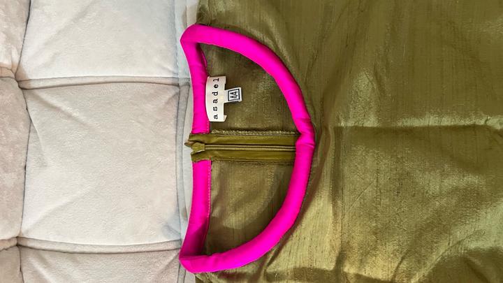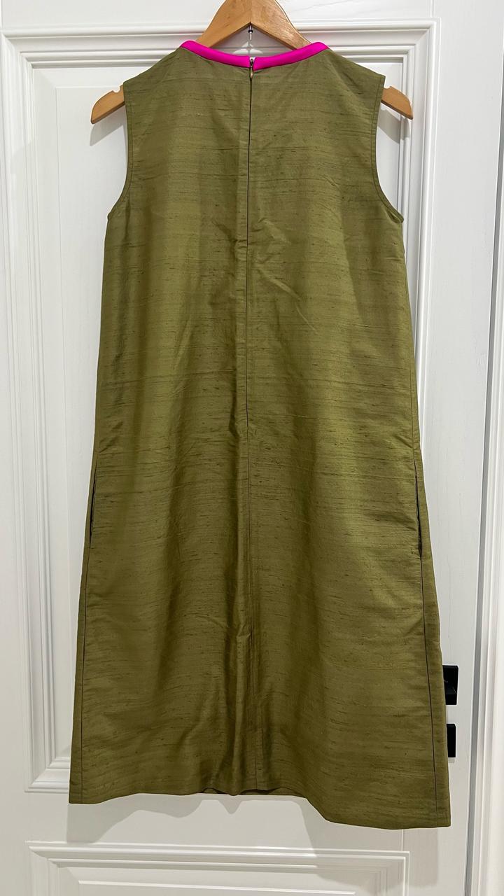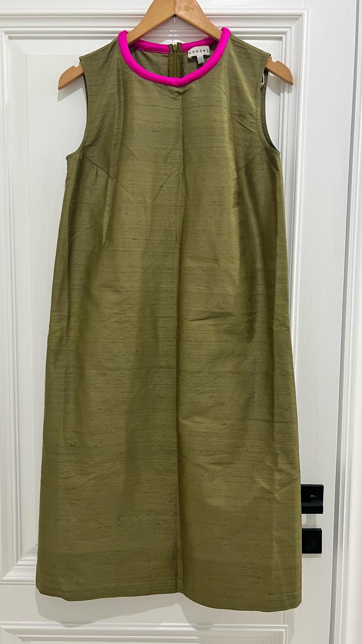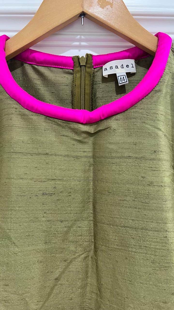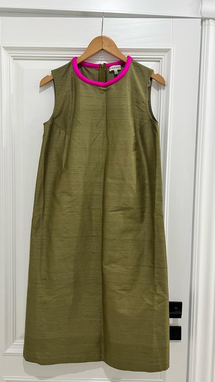 Продается платье Бренда Asadel. Платье A силуэта , по бокам карманы, сзади замок, зеленого цвета, на шее розовая окантовка. Из очень красивой итальянской ткани, в отличном состоянии не ношеная. Размер 42-44. Цена 30000 тенге. Артикул: 549912