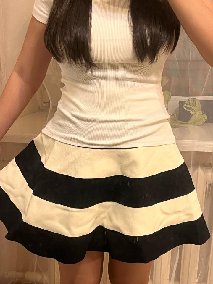 Черно-белая юбка.Нет бренда.Продам очень классную юбку-солнце. Она отлично держит форму за счет плотного материала, создавая красивый объемный силуэт. Идеально подойдет как для школы/учебы, так и для прогулок. Состояние отличное, замок работает идеально. Артикул: 549932