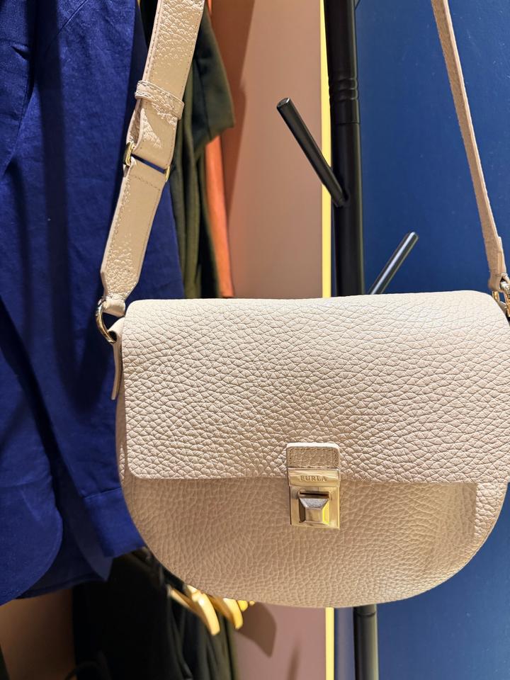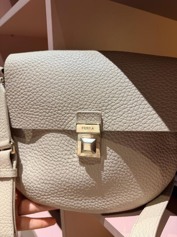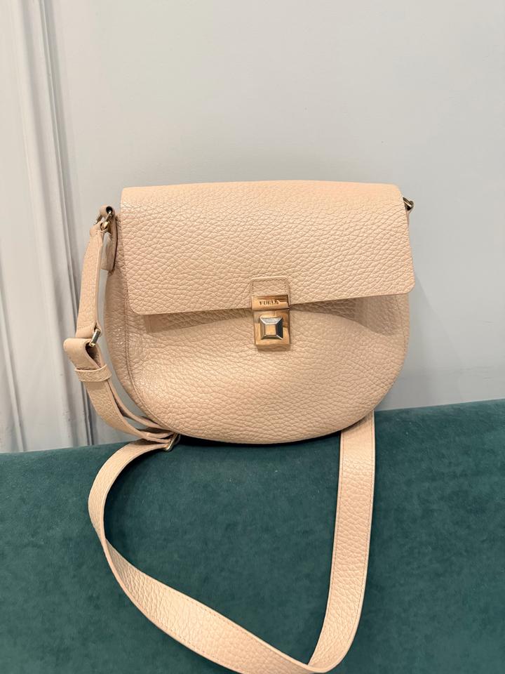 Сумка кроссбоди из зернистой натуральной кожи Furla, модель Glenn. Размеры: ширина 25см, высота 23см, глубина 5см. Длина ремешка регулируется 67-111см. Цвет нюдовый розовый (пыльная роза) Артикул: 549948