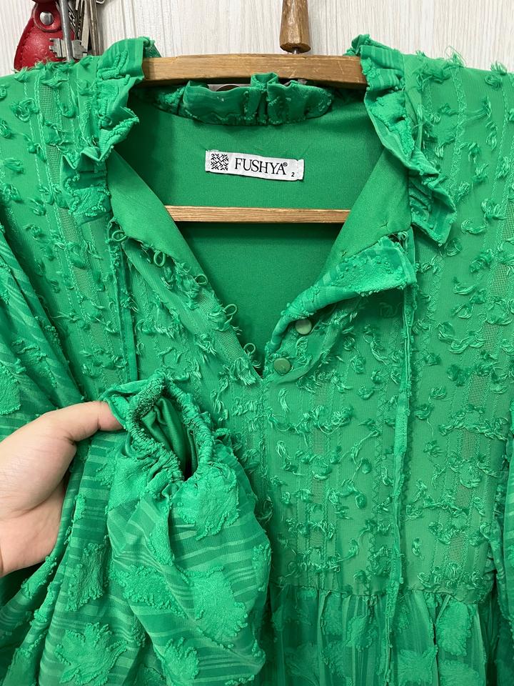 Зеленое платье Турецкая от бренда Fushya, в идеальном состоянии ни разу не носила как купила. Подайдет до 54р , сама ношу 54р и все свободно. Купила за 25Тыс. Артикул: 550008