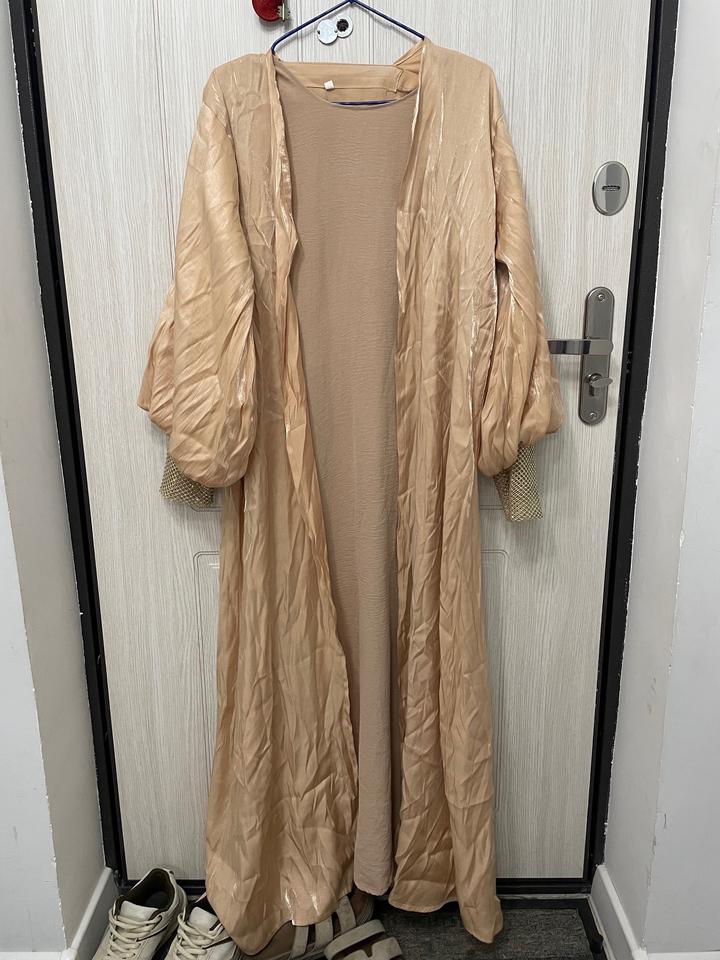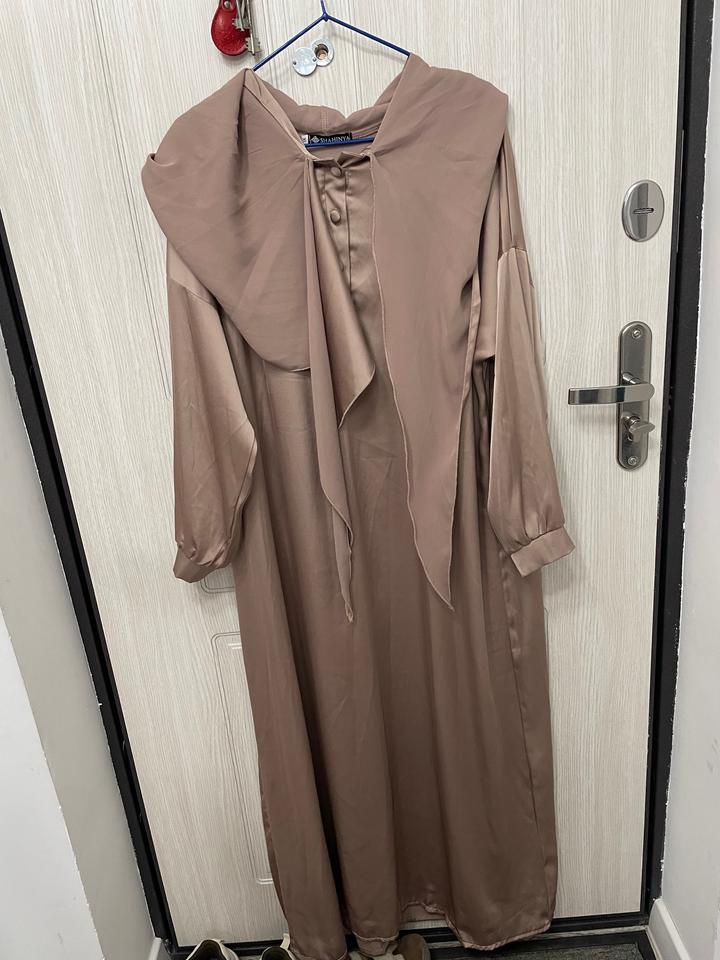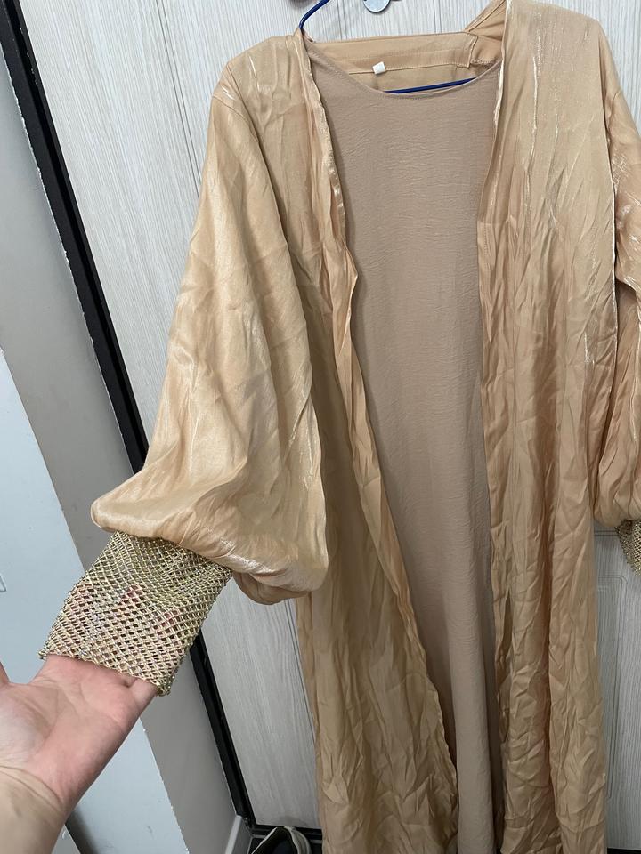 Продам Абайку с платьем Размер до 54р , в отличном состоянии вместе с платком с бисером как на фото+ подарок платье с копишоном новая ни раз не носила стоит в шкафу просто так. Артикул: 550033