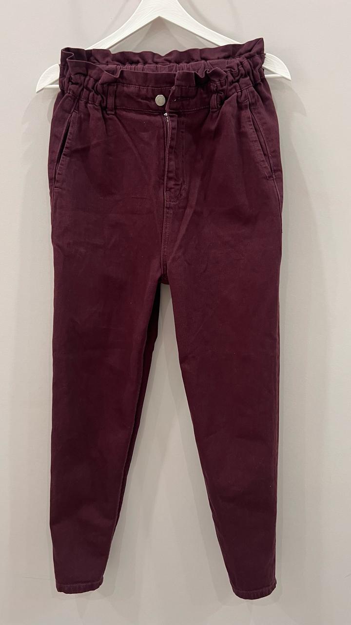 Стильные брюки Paperbag в винном цвете / Высокая посадкаL/XL