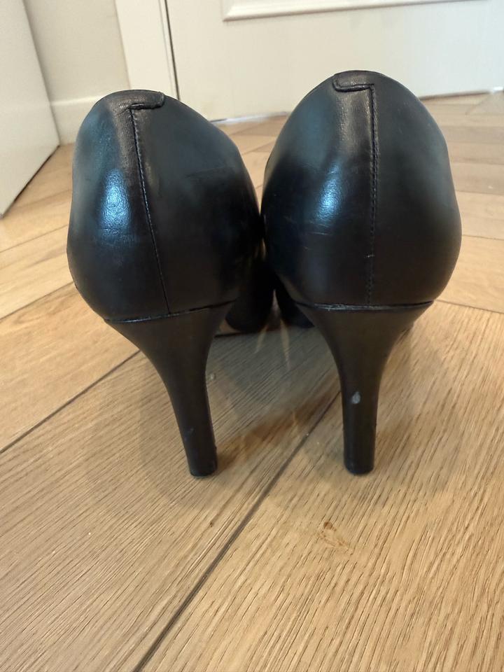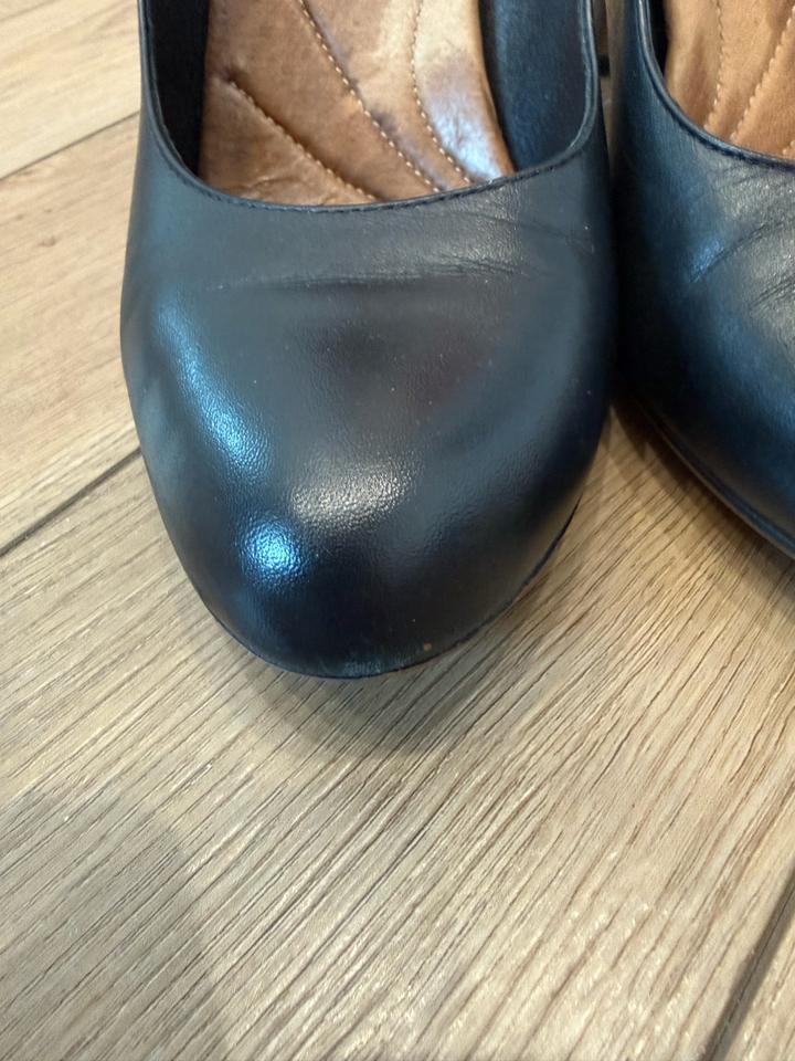 Черные туфли на каблуке Классические Очень удобная ортопедическая стелька Внутри кожа Есть ньюансы но они на фото, заполируйте и будут как новые Артикул: 550170