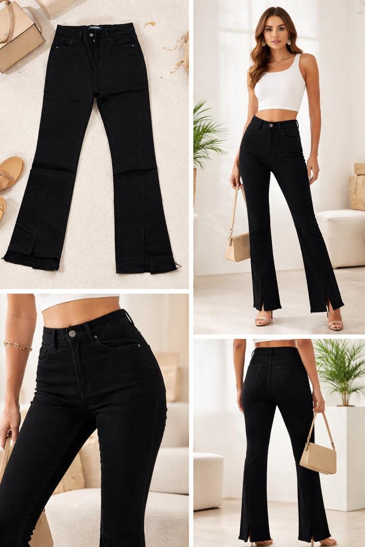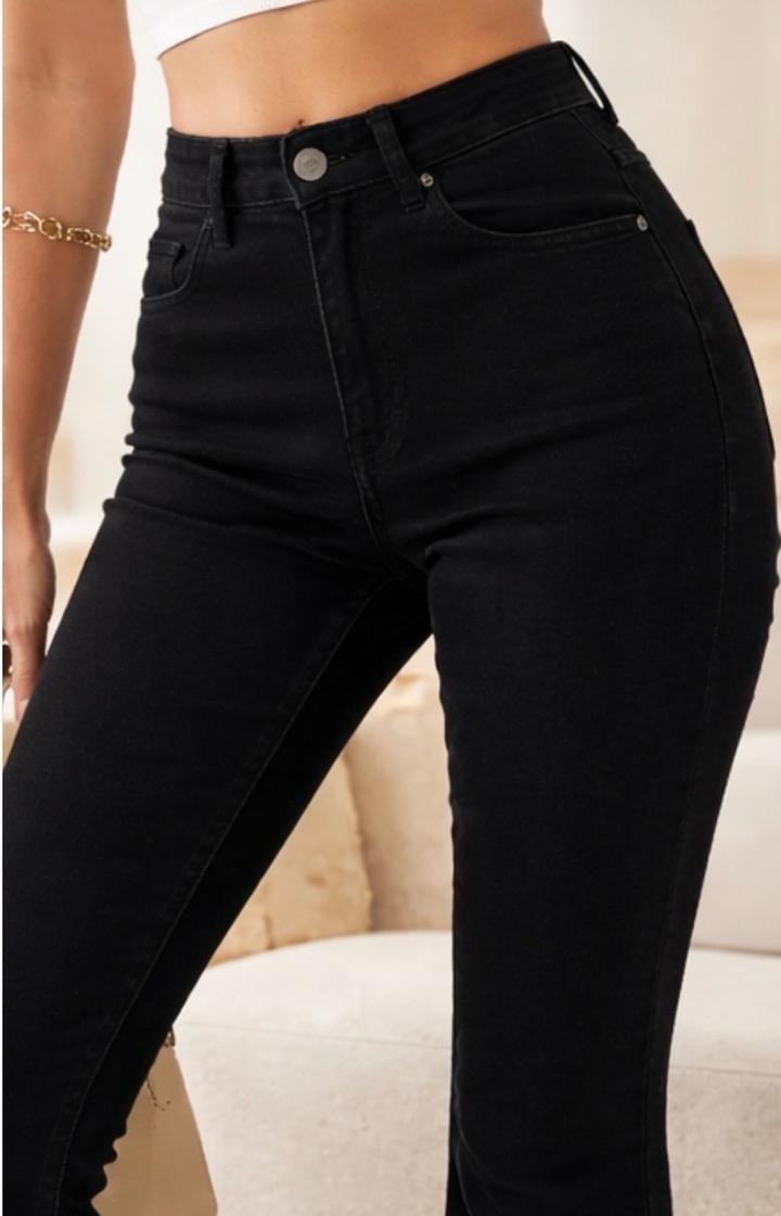 Женские черные джинсы клеш с высокой посадкойM