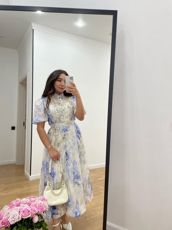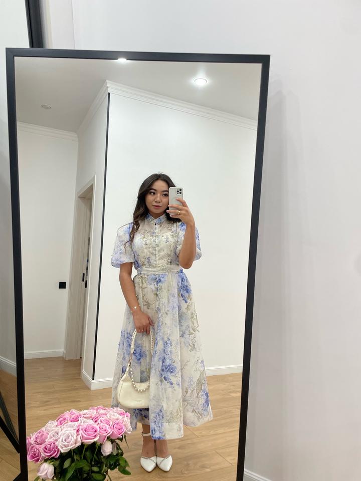 Светлое платье, подклад есть как маячка, длина миди, в отличном качестве, стразы есть Артикул: 550502