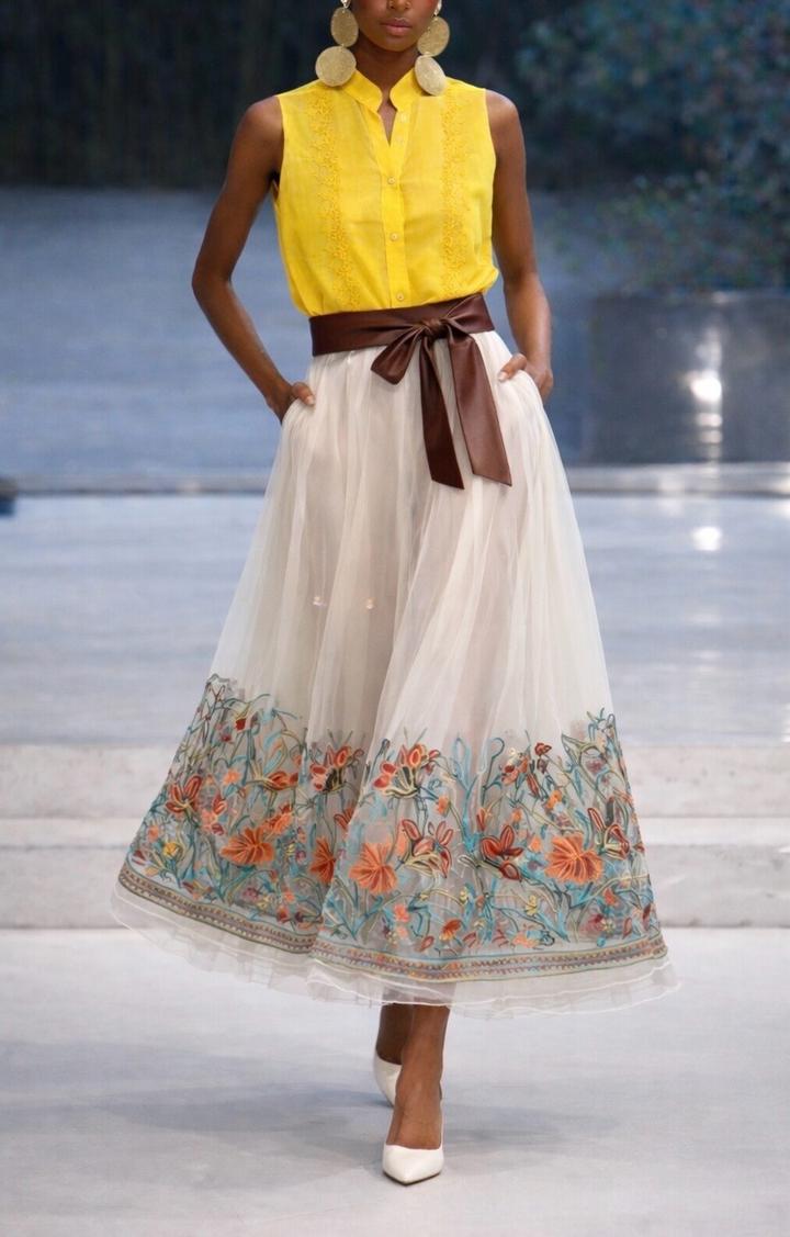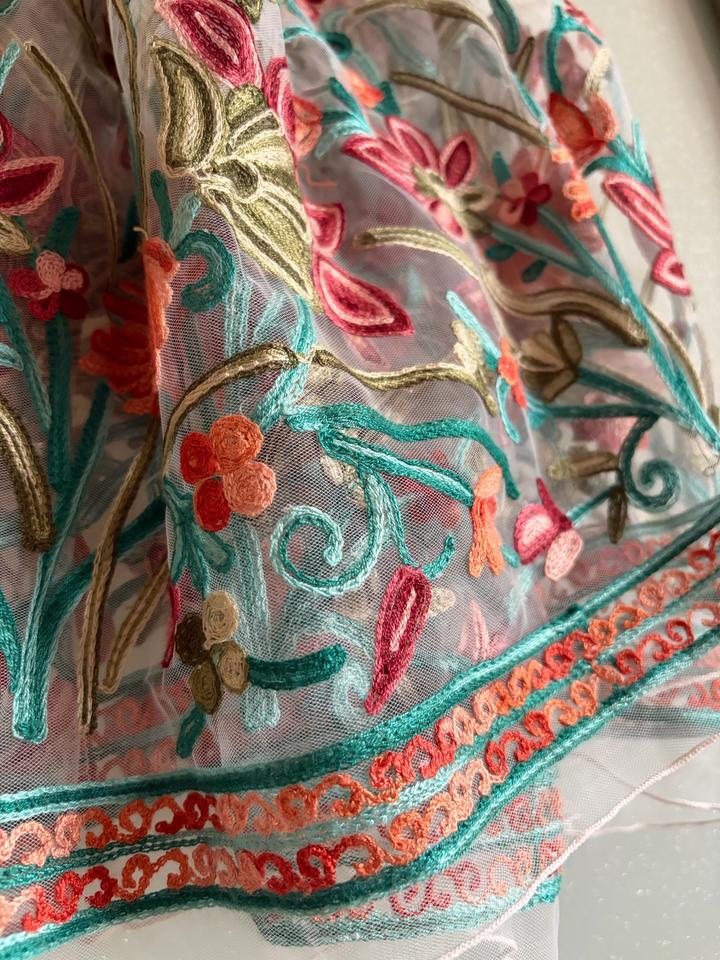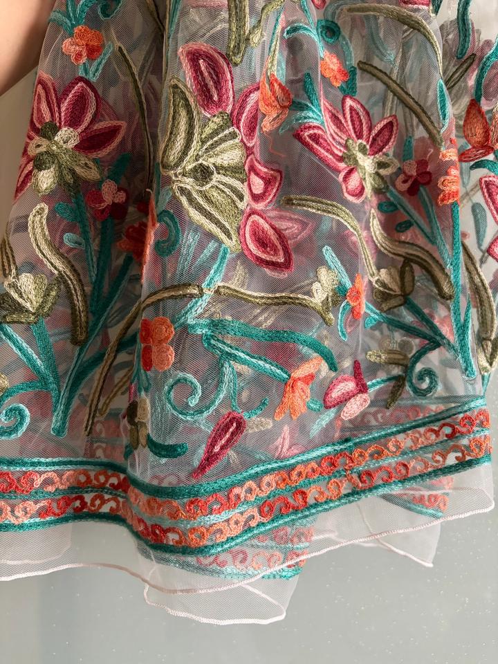 Лёгкая полупрозрачная юбка из сетки со сборкой на талии. Подол украшен цветочной вышивкой. На талию от шестидесяти до семидесяти см. Состояние отличное. Артикул: 550503