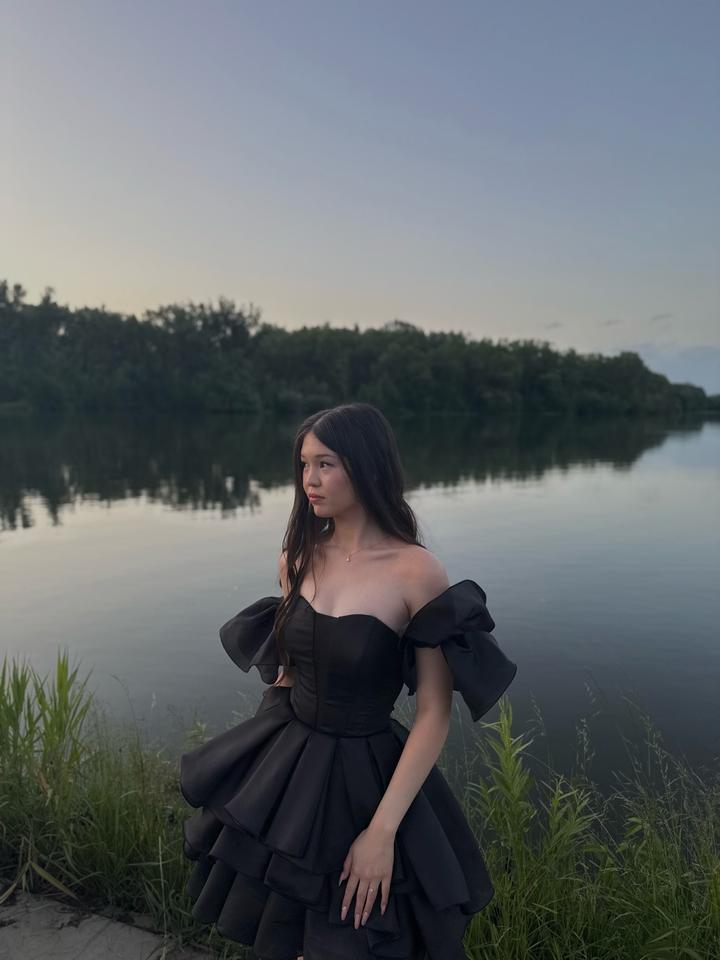 Черное вечернее платье с корсетным верхом и пышной многослойной юбкой. Подчеркивает талию и красиво сидит по фигуре. Есть съемные рукавчики — можно носить с ними или как платье с открытыми плечами. Ткань плотная, не просвечивает, хорошо держит форму. Подойдет для выпускного, фотосессии или вечера. Размер: стандартный, талия регулируется корсетом Состояние: идеальное, носила один раз. Материал: атлас, плотный сатин(основная ткань), фатин (юбка) Артикул: 550524