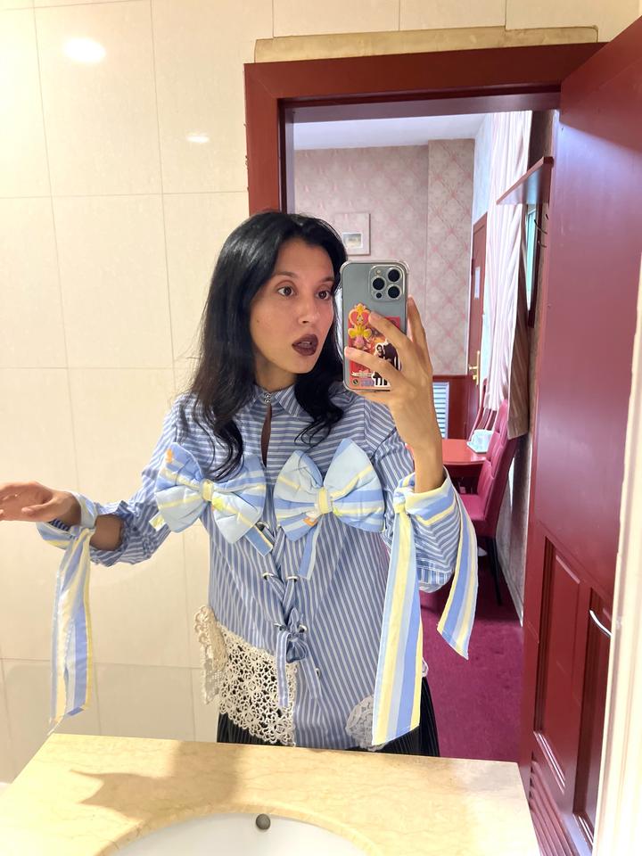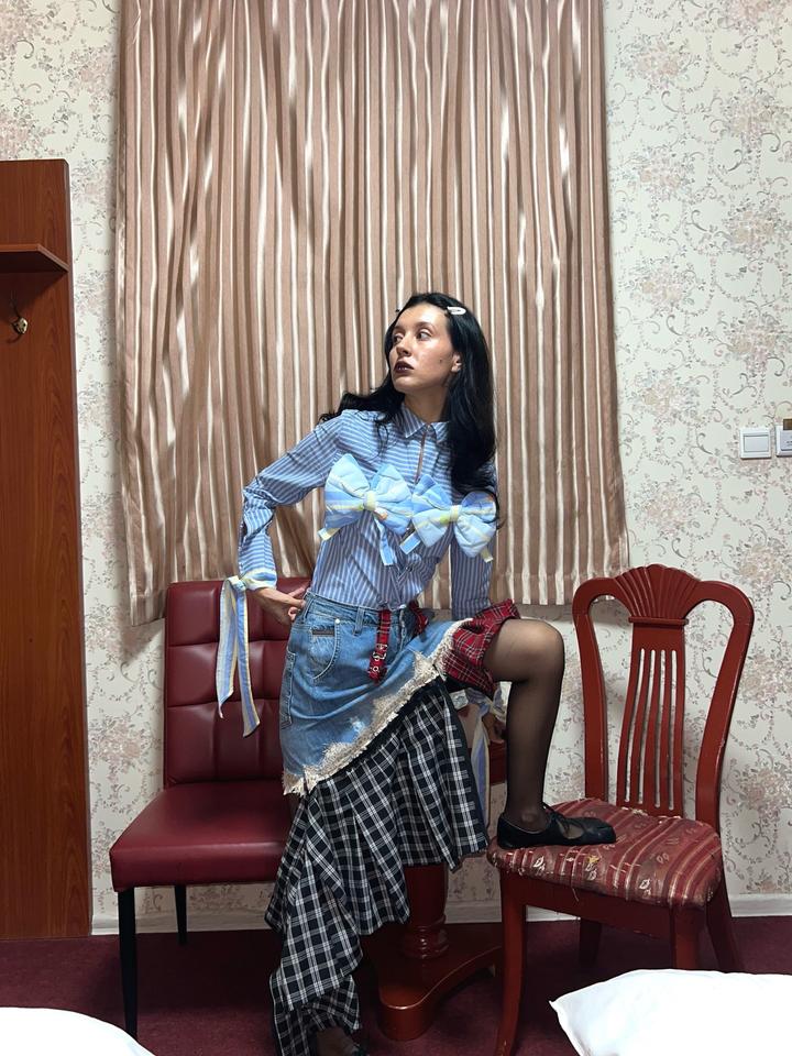 Абсолютно новая рубашка-апсайкл казахстанского бренда GOOD BUT NOT THE BEST #2. Размер S-маломерка М, банты снимаются при желании Артикул: 550618