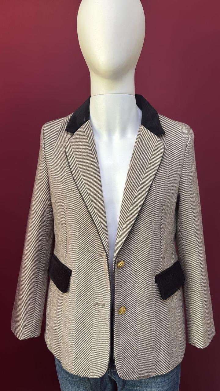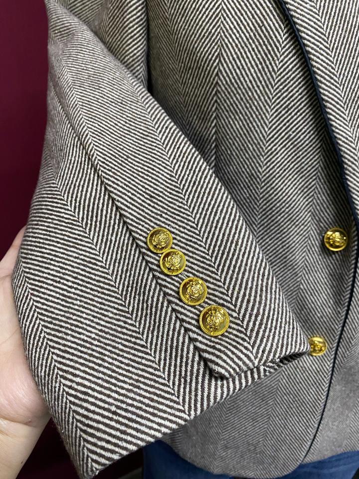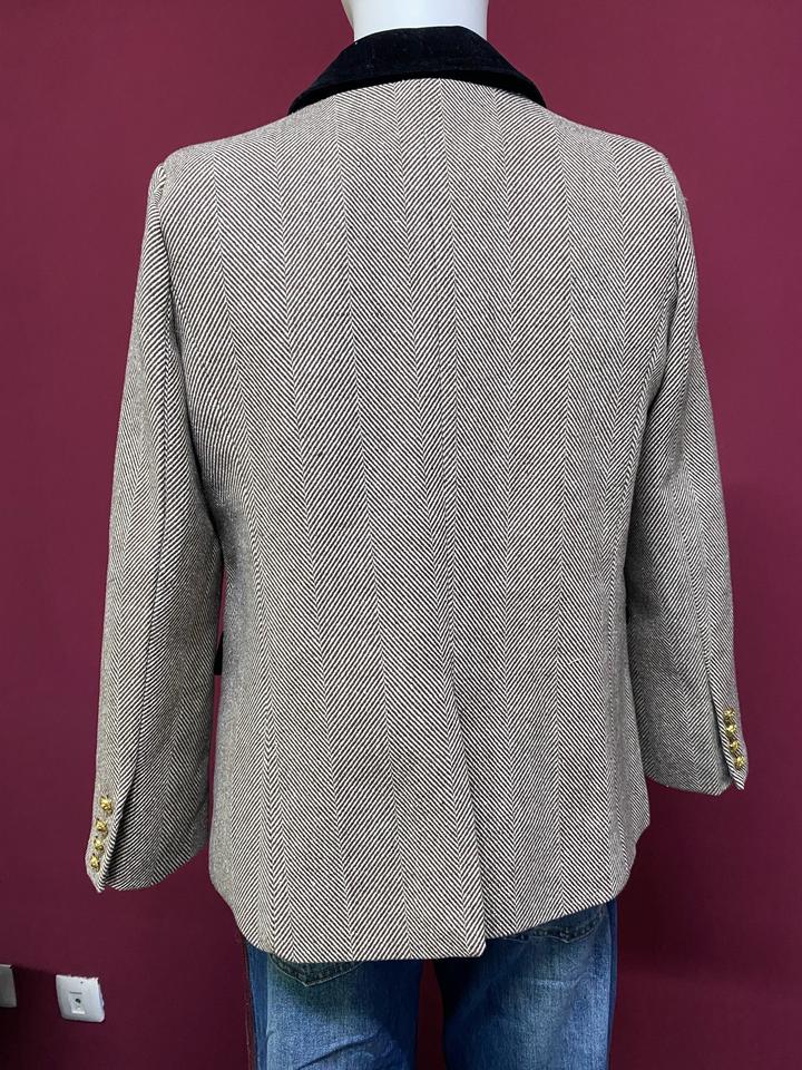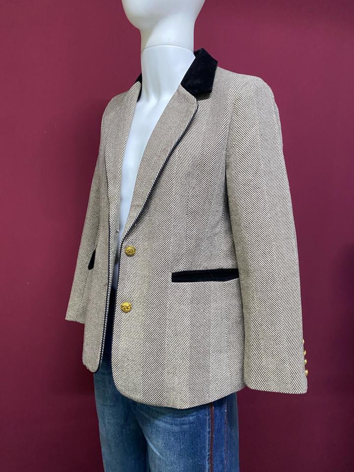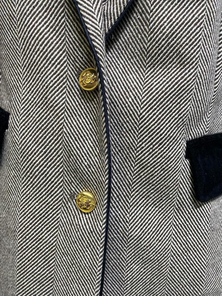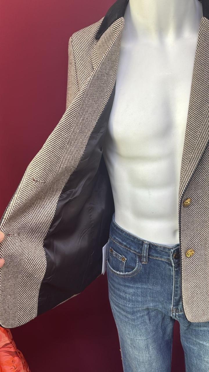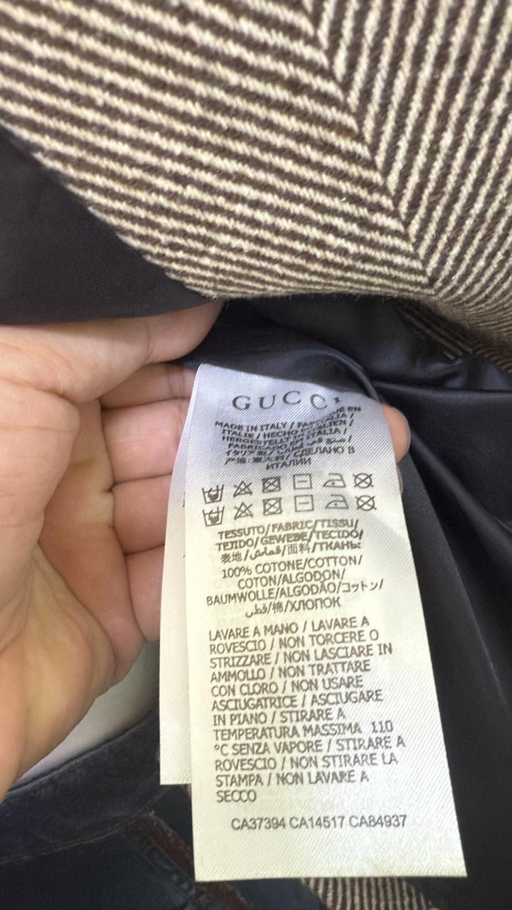 Жакет под gucci, полностью из хлопка. Контрастный черный воротник и карманы выполнены из бархата. Артикул: 550679