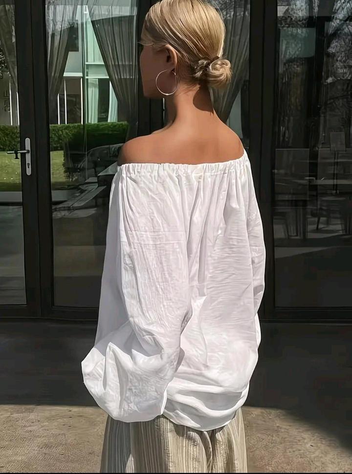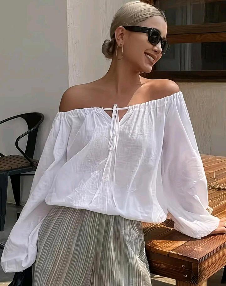 Белая блузка-крестьянкаL