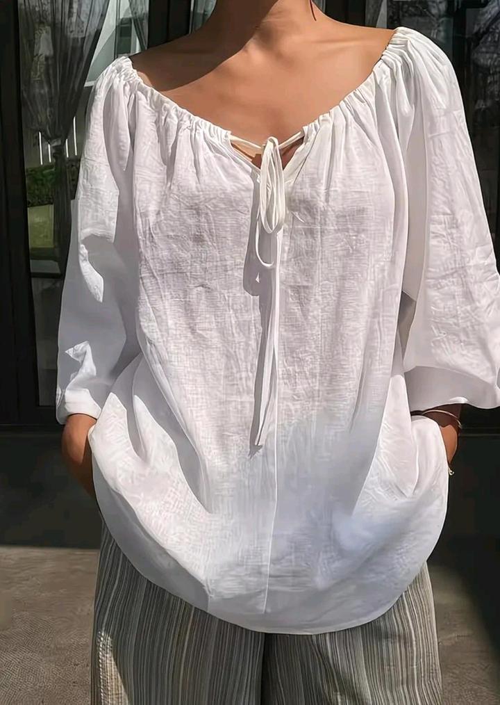 Белая блузка-крестьянка, рукава на резинке, верх затягивается кулиской. Размер подойдёт с 46 до 50. Смотрится очень эффектно.ткань очень приятная для тела. Артикул: 550680