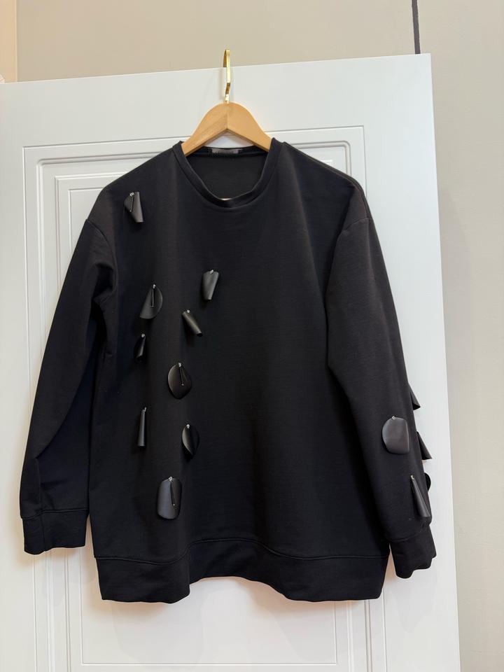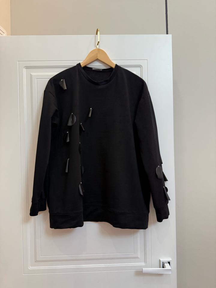 Черная кофта свободного кроя, размер подходит и на S, и на XL. Классное качество. Нет никаких дефектов, состояние нового. После стирки не требует глажки Артикул: 550720