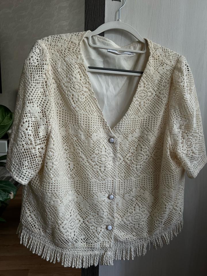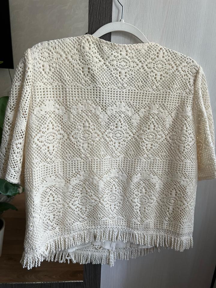 Кружевная блузка, очень красивая и приятная ткань, не просвечивает есть подклад. Была куплена за 20 тыс, состояние идеальное, но цена намного ниже потому что отсутствует одна пуговица (см на фото) Артикул: 550870