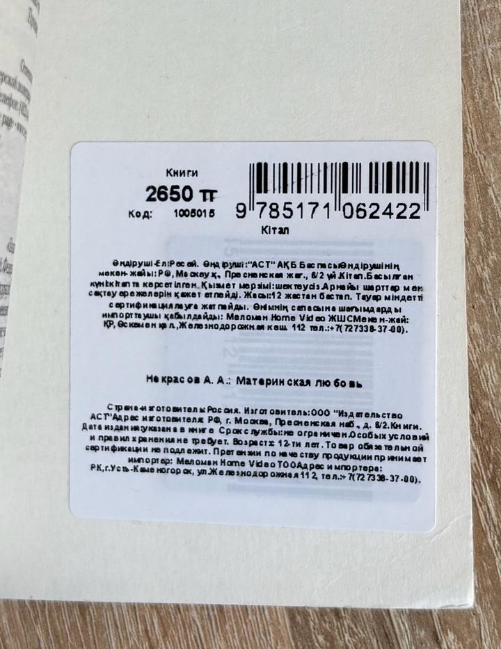 Книга «Материнская любовь» Продам срочно! Цена - 1500тг Артикул: 550897