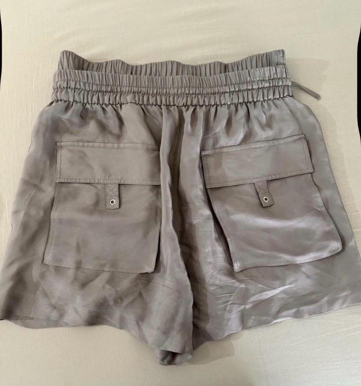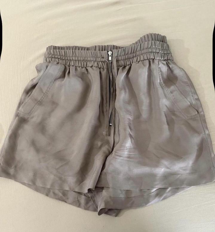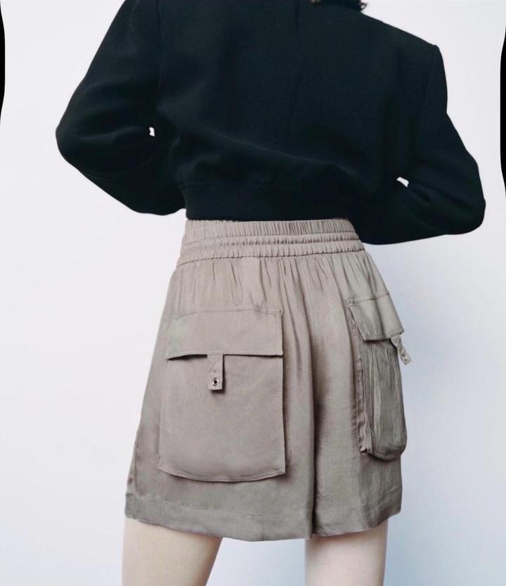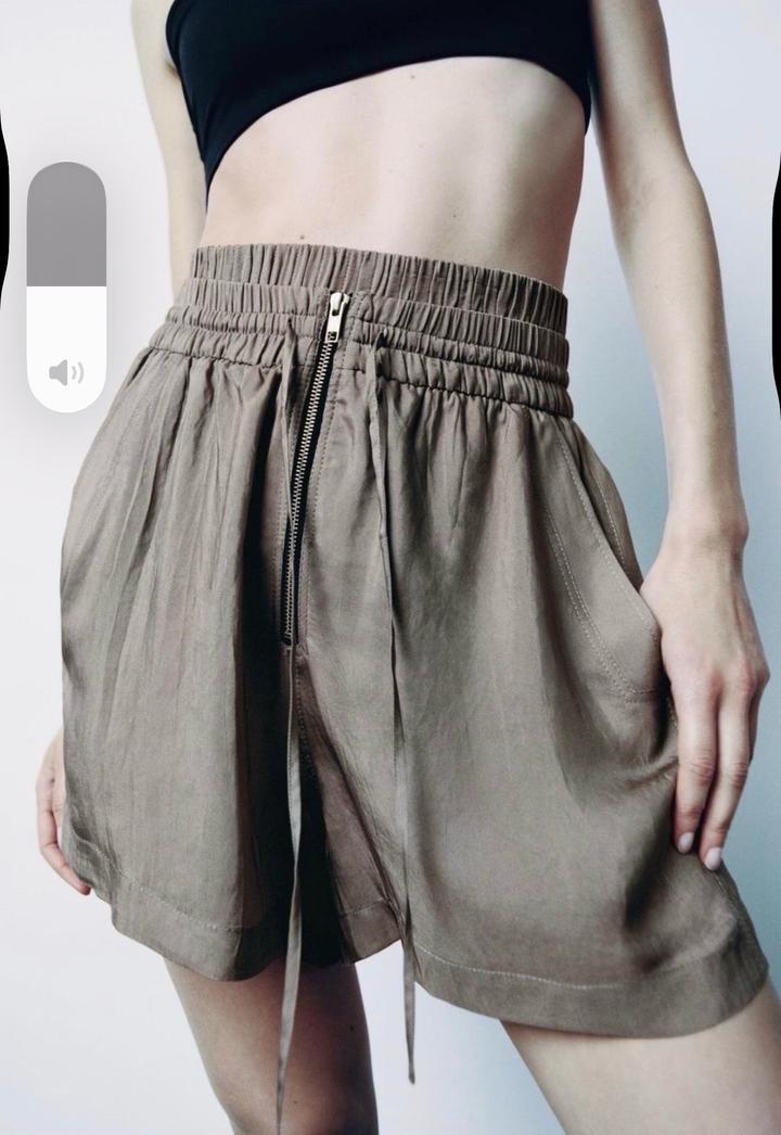 Шорты Zara, цвет тауп (дорогой бежево-серый оттенок) Надевала 1 раз, мне большие. Очень классно садятся, высокая посадка, подчёркивают талию Ткань лёгкая, струящаяся, смотрятся дорого Размер указан M, но по факту лучше подойдут на M–L (больше на L) Артикул: 550917