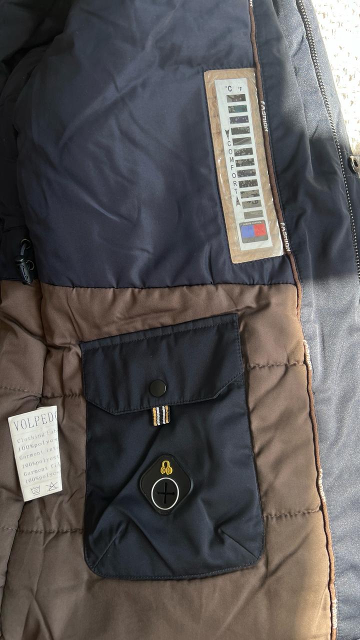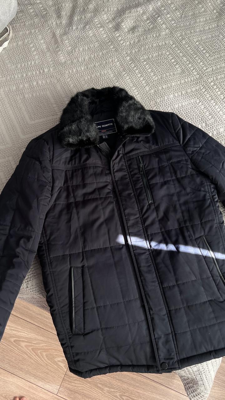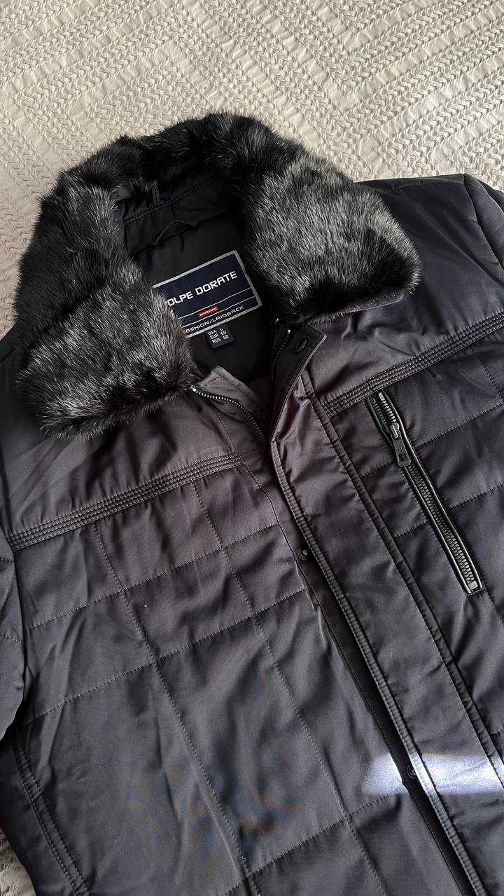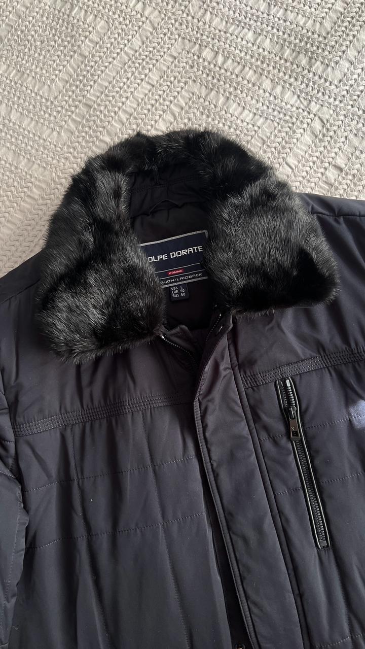 Мужская зимняя куртка , размер 50 (L) Воротник натуральный мех (сьемный ), цвет куртки темно синий Теплая, легкая ,надевали пару раз. Артикул: 551005