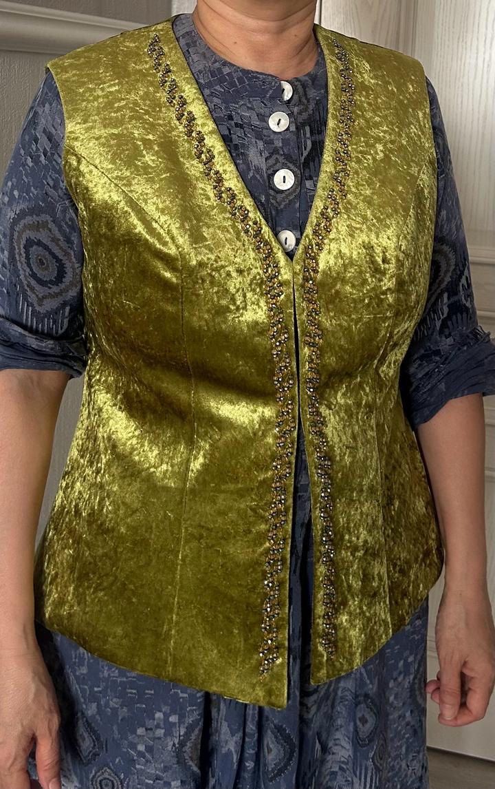 Бұзау жалаған матадан тігілген Шоғы ательенің кәжекейі, тек 1 рет киілген. 44-46рр Артикул: 551106