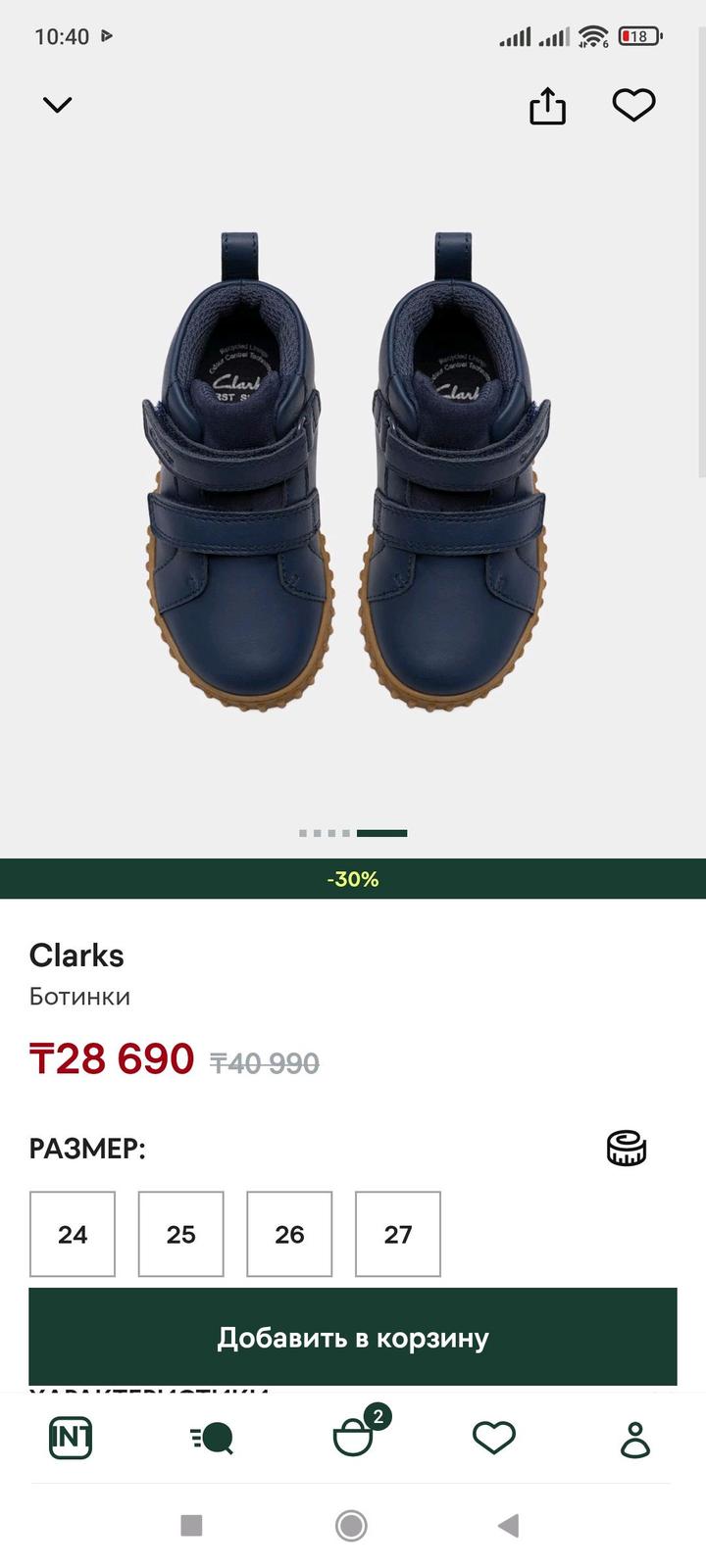 Ботинки кожаные Clarks 24 размера. Были куплены в магазине Intertop. Носились 1 месяц и стали маленькими,в связи с чем выставлены на продажу. Дефектов нет. Есть незначительные признаки носки. Отправлю в оригинальной коробке. Артикул: 551129