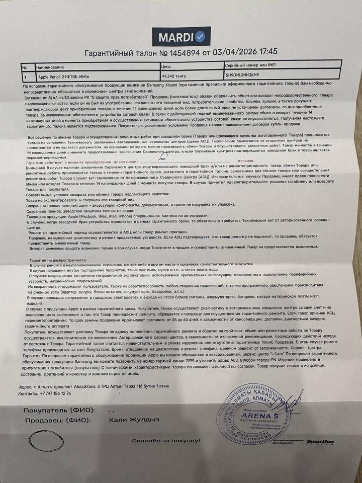 Стилус Apple Pencil 2nd Generation белый/ НОВЫЙ/ а так же есть гарантия на 6 месяцев Артикул: 551158
