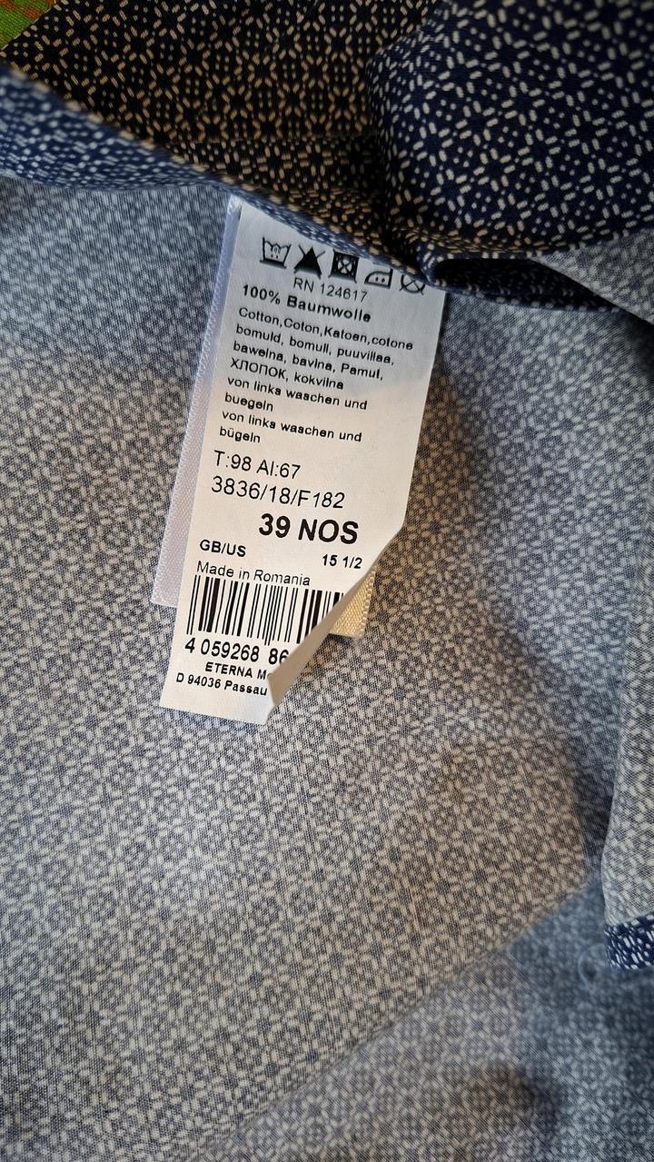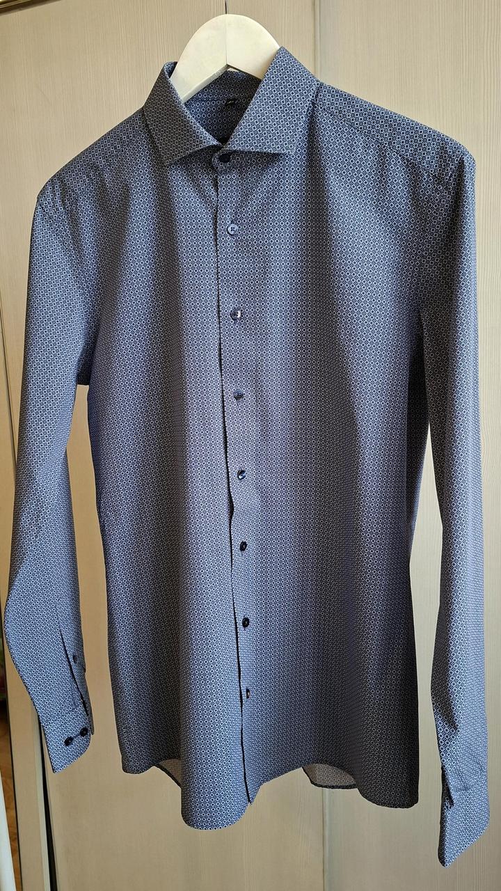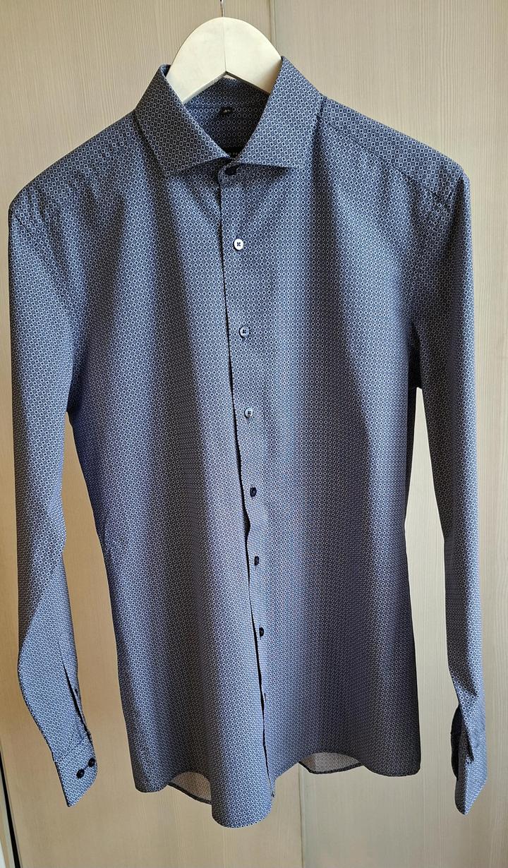 Продам идеальную рубашку от известного бренда Eterna! Стоила около 58.000 в тенге, отдам с хорошей скидкой! Абсолютно новая, аж хрустит! Рубашка соткана из высококачественного 100% хлопка, в тоненькой почти невесомой выделки! Безукоризнено сидит и смотрится, модель slim line, пуговицы произведения искусства! Рубашка в синем цвете с белым принтом, к сожалению фотографии не передают всей её красоты, но поверьте она роскошная! Маркировка 15,5/39, на 48/50 Артикул: 551232