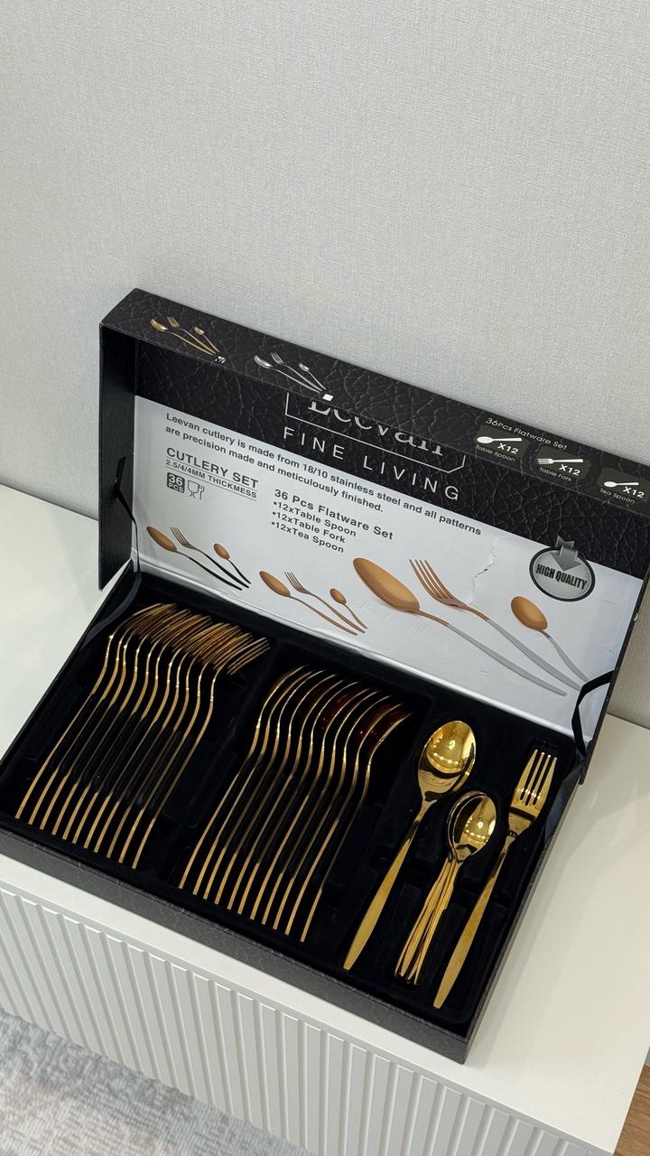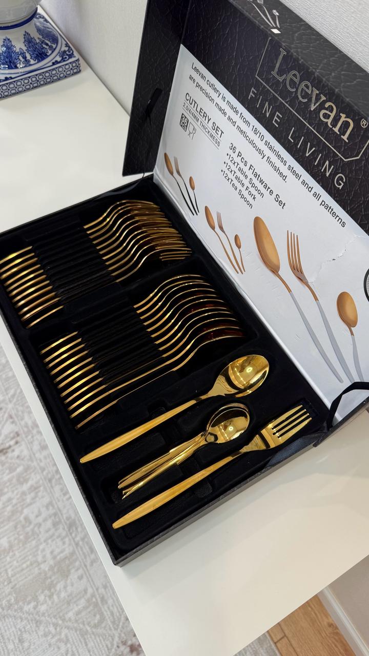 Столовые приборы на 12 персон в золоте , в отличном состоянии, без дефектов и повреждений Артикул: 551366
