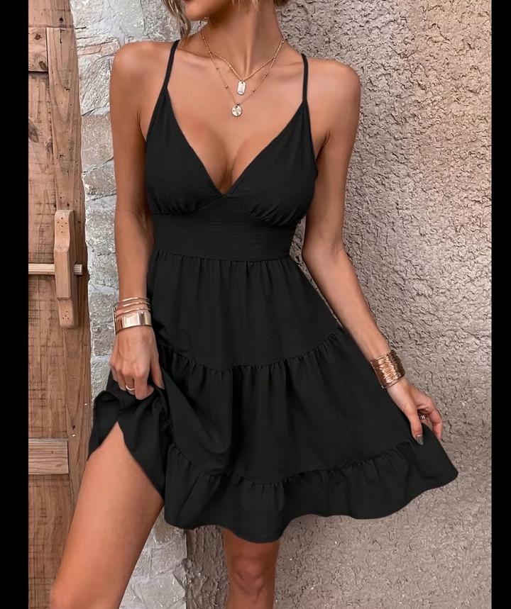 черное платье с открытой спиной, на тонких лямках, заказывала онлайн не подошел размер Артикул: 551429