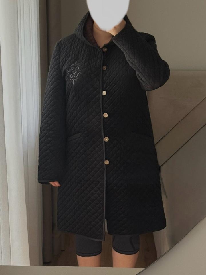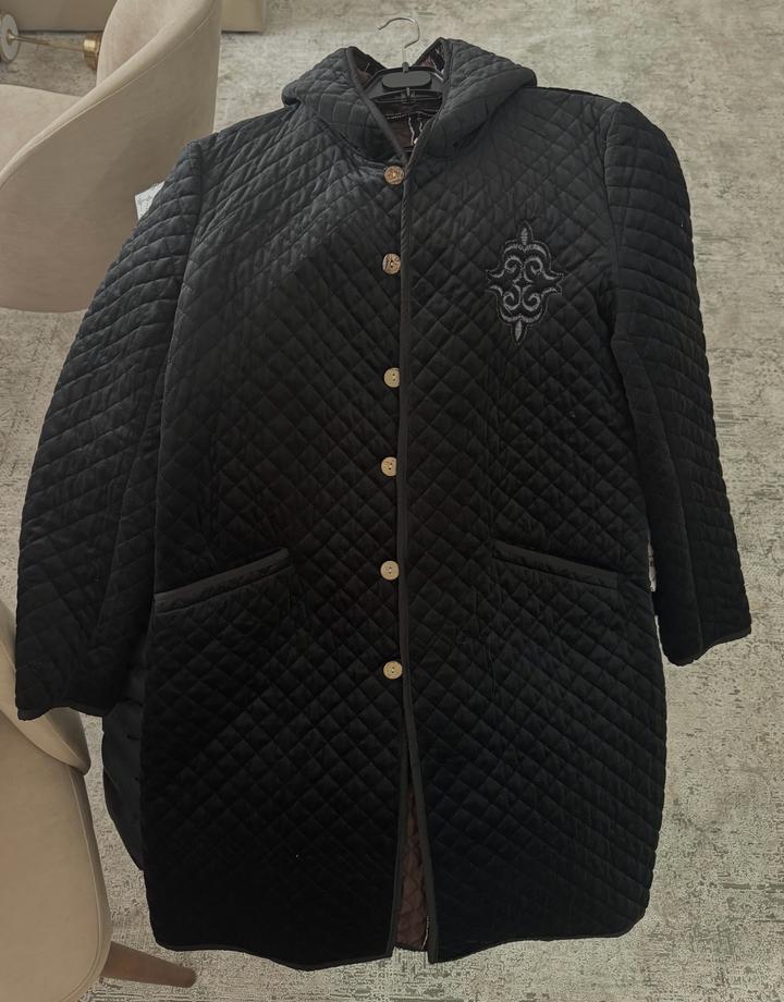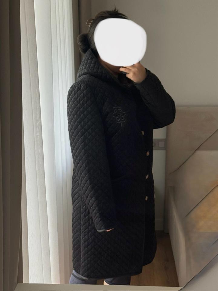 Современный шапан с капюшоном на весну/осень. Не плотный, но теплый внутри. Новый неодеванный! Подарили маме, но к сожалению не подошел размер. На фото модель ростом 162 см, размер Л в футболке внутри. Артикул: 551436