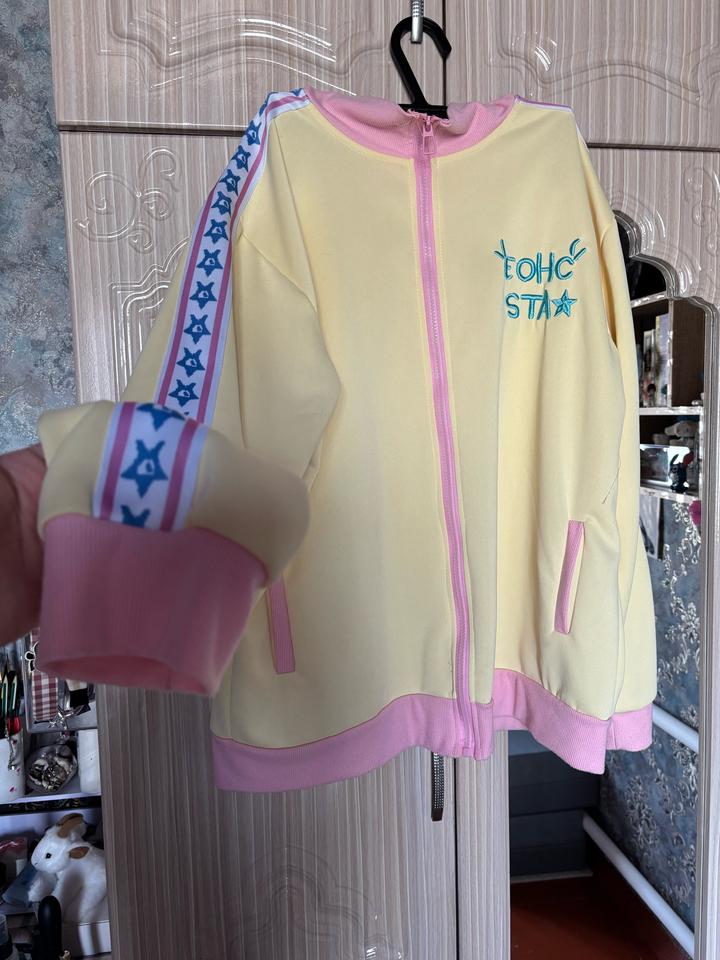 Джинсы розовые, размер М на рост 164 сидят хорошо, цена 3500. Свитер, на размер М не сильно оверсайз, цена 4000, очень теплый. Кофта желтая, на размер М немного оверсайз, 3000. Белые штаны(как юбка выглядят), 3500, тоже размер М. Костюм из шорт и футболки на замке, он размера М оверсайз, цена 5500 Артикул: 551446