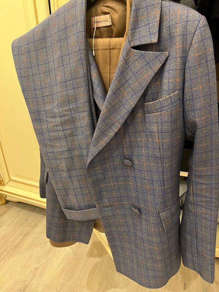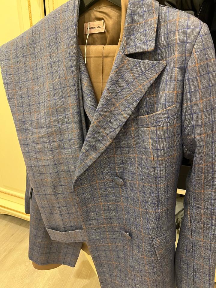 Классический костюм казахстанского бренда Одной пуговице на пиджаке нет (уверено) Размер S, брюки с манжетами, прямые Артикул: 551530
