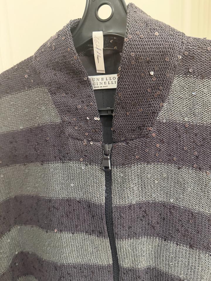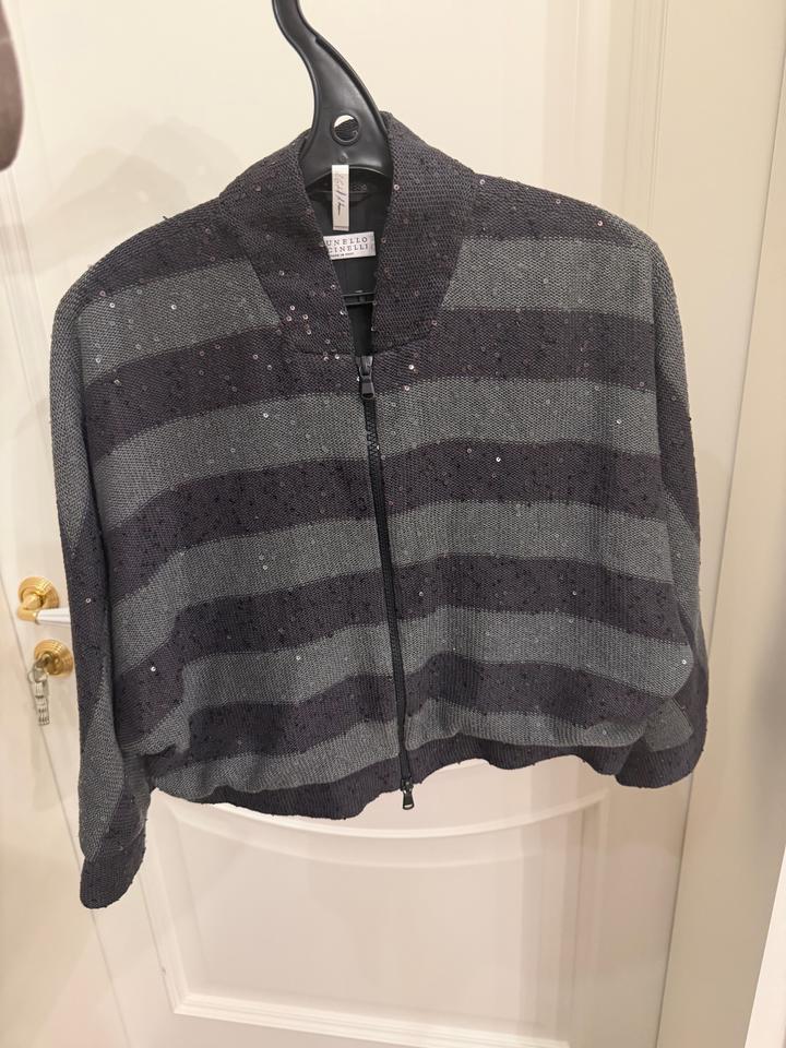 Короткая кофточка Brunello Cucinelli. С пайетками. Очень красиво смотрится. 100% оригинал брали дорого. В хорошем состоянии. Все пайетки на месте. Артикул: 551592
