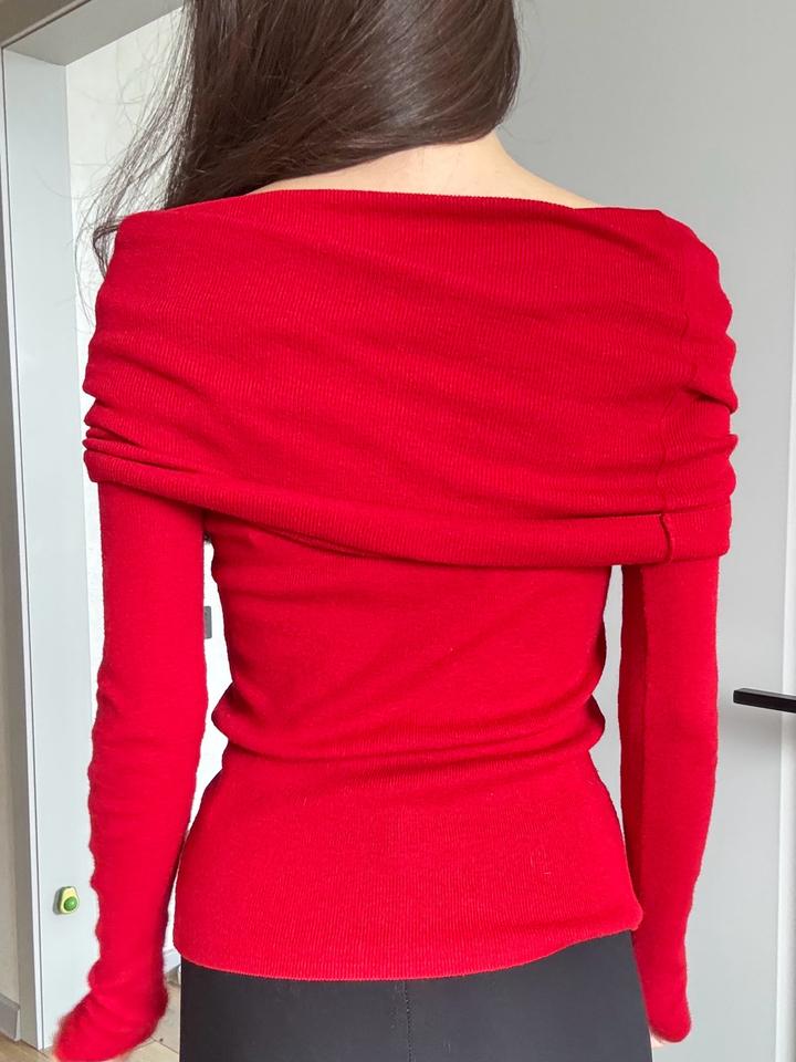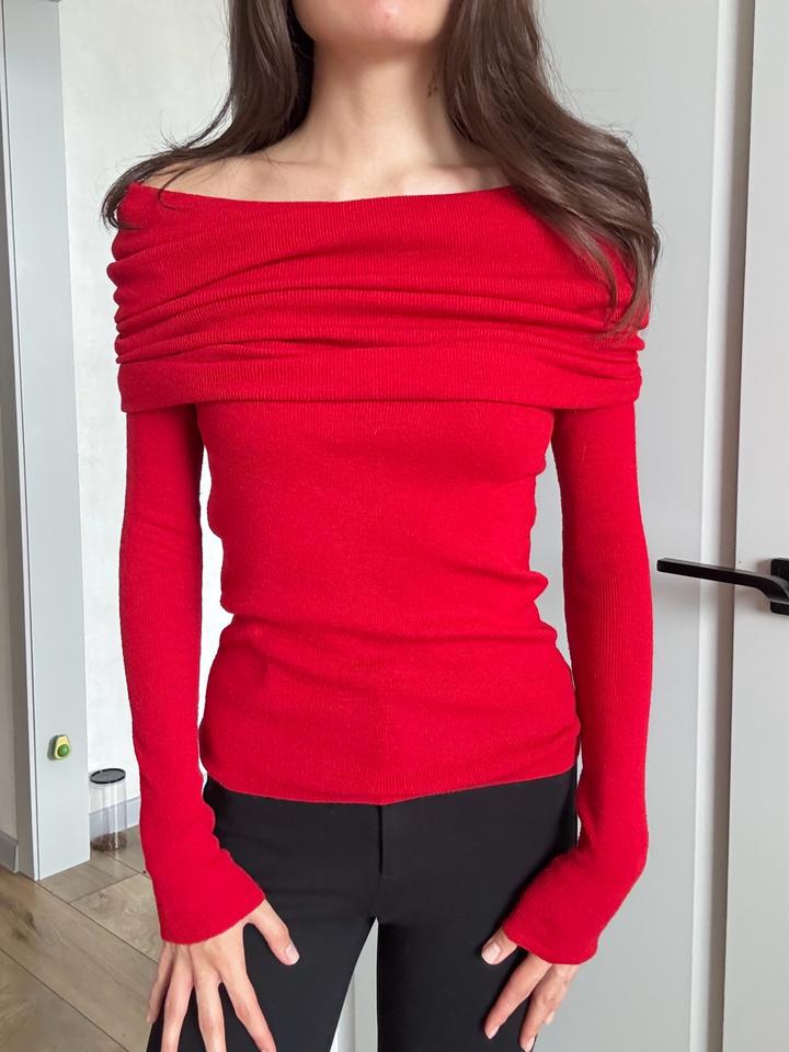 В составе шерсть Верхняя часть самостоятельная, не пришитая, можно регулировать открытость плеч Очень стильная, ярко-алый цвет В составе модал и шерсть Артикул: 551656