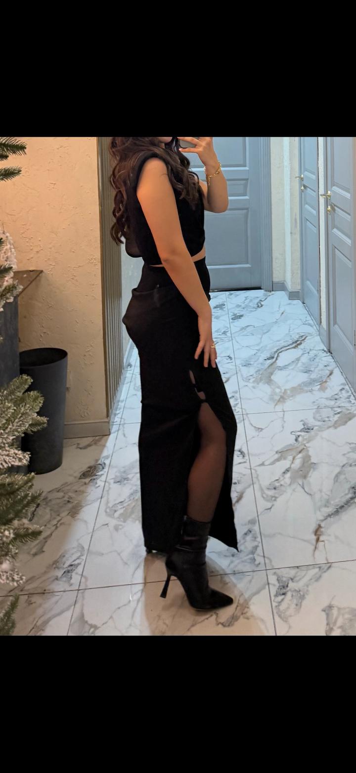 Стильный эффектный комплект из юбки и топа. Мой рост 160 см. Комплект в идеальном состоянии без дефектов. Имеются подплечники. Вырез только с одной стороны. На размер S. Торг уместен Артикул: 551696