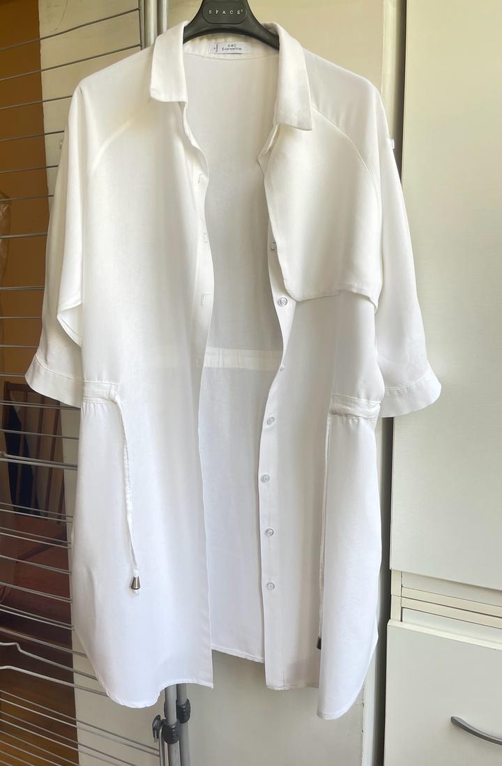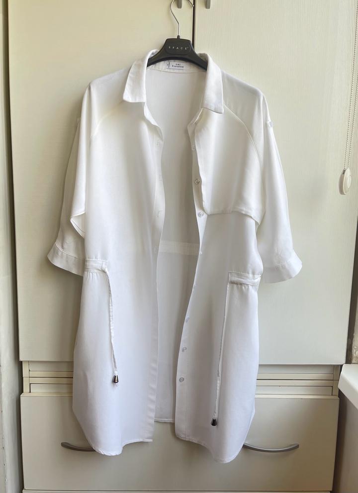 классная удлиненная рубашка на завязкахS