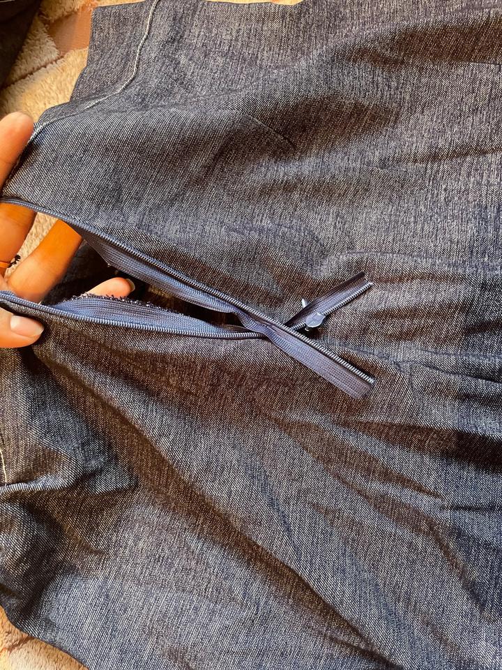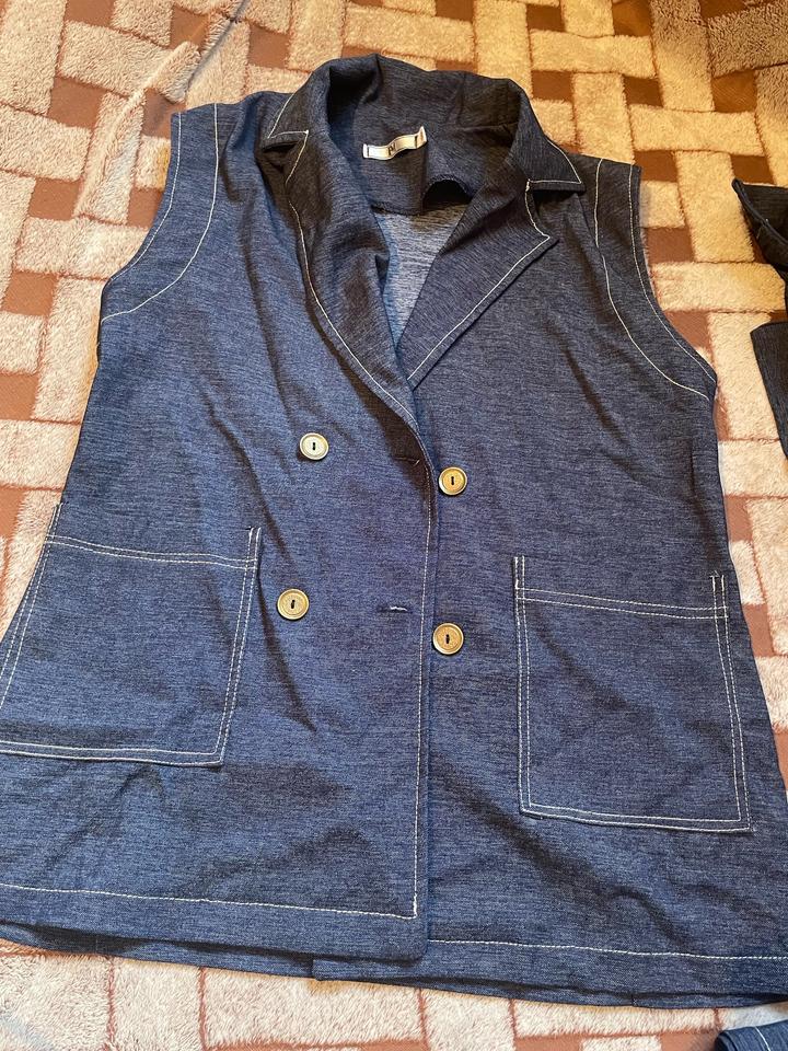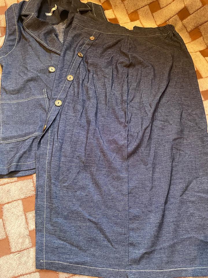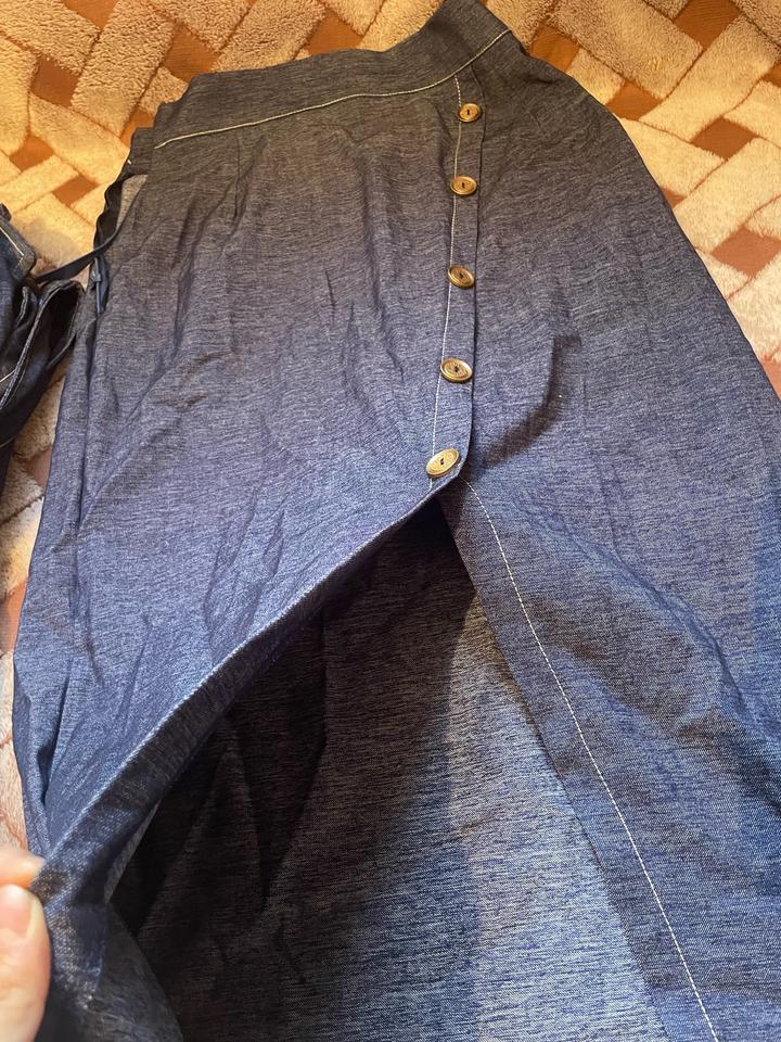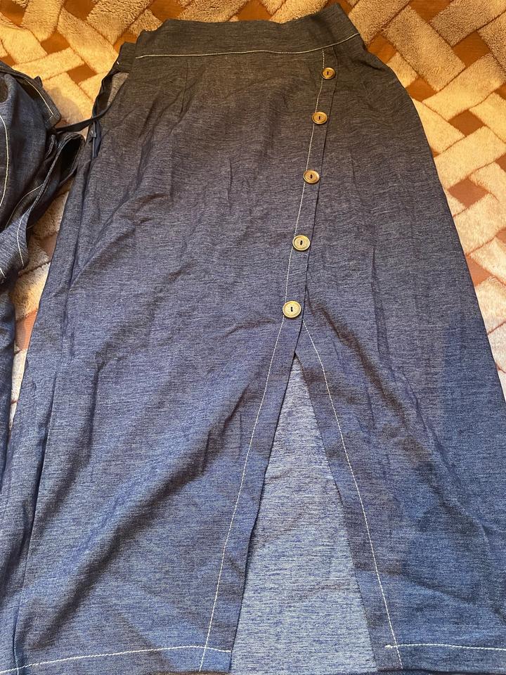 Джинсовая двойка женская 50 размера. Юбка миди с вырезом. Поврежден замок на юбке Артикул: 551727