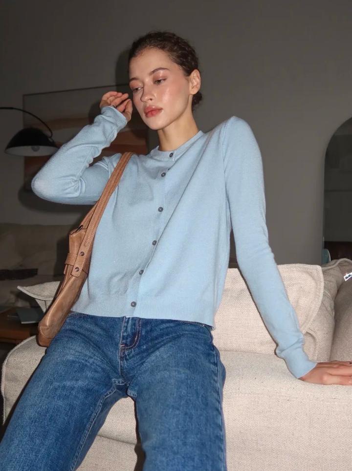 Голубой кардиган, очень приятный материал. Не носился ни разу, абсолютно новый:) Покупала за 17.000 тенге. Артикул: 551906