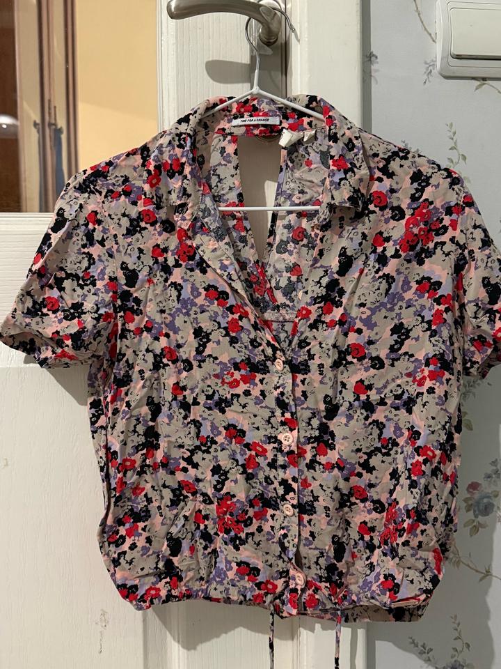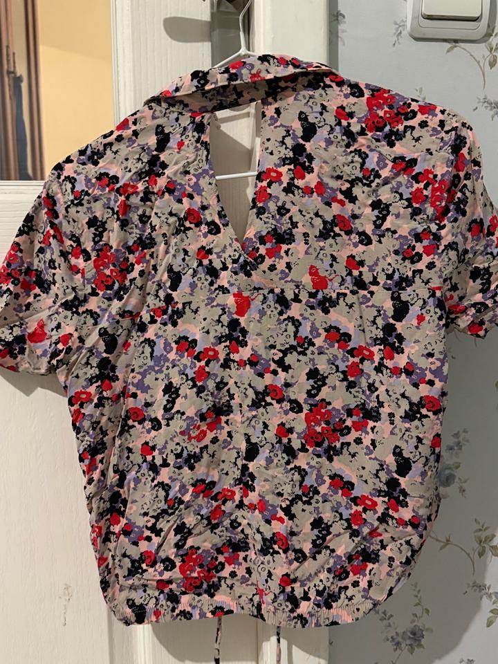 Рубашка с аккуратным вырезом на спине. Цветочный принт. На пуговицах. На нижней части завязки для регулирования Артикул: 551938