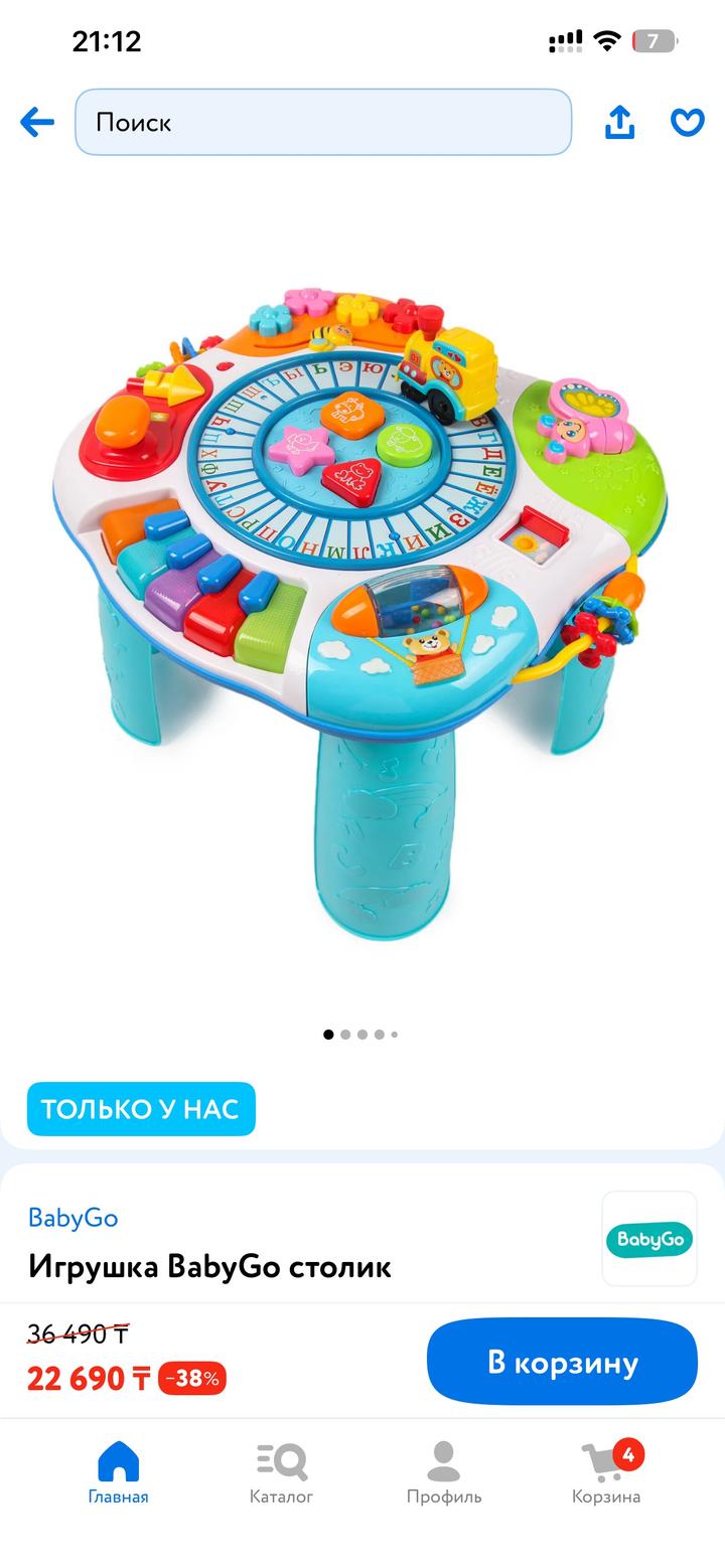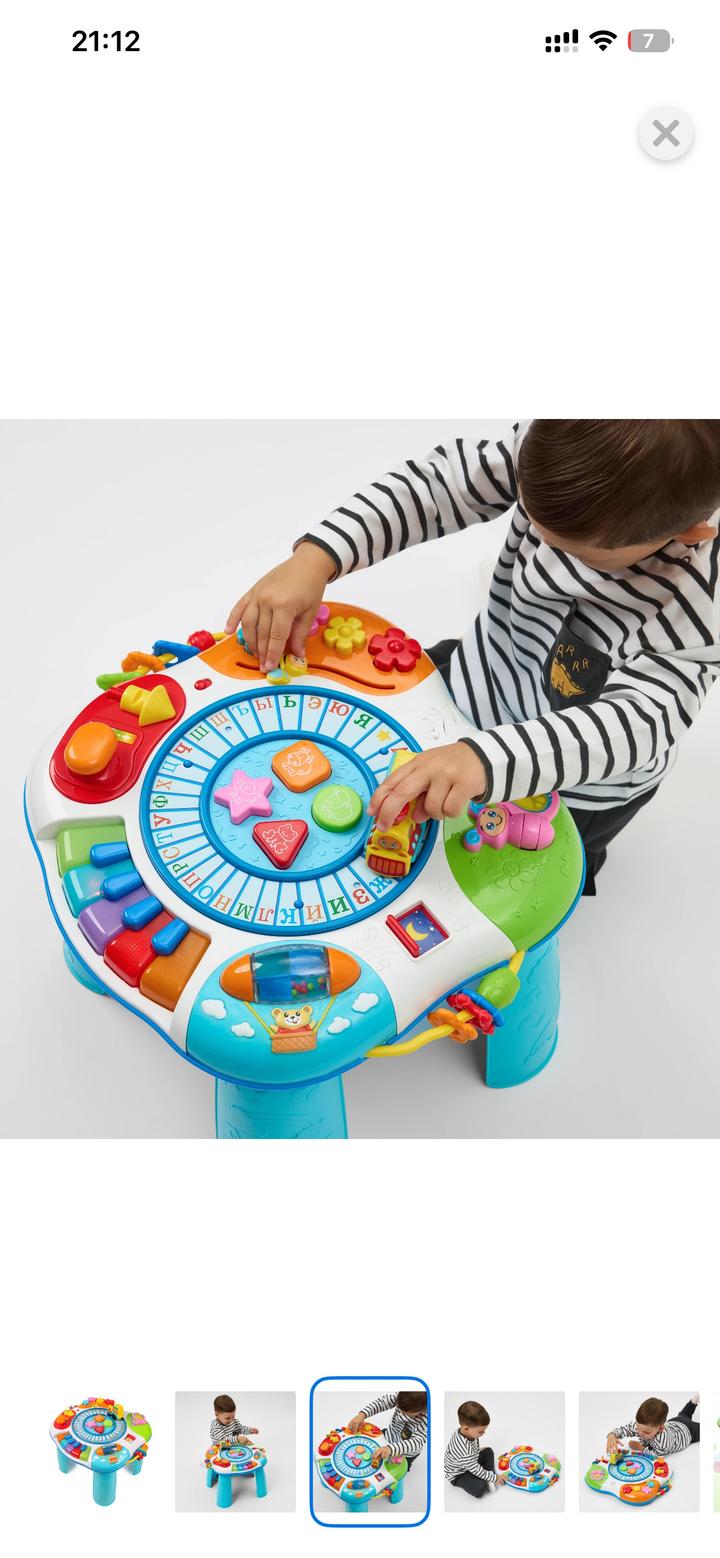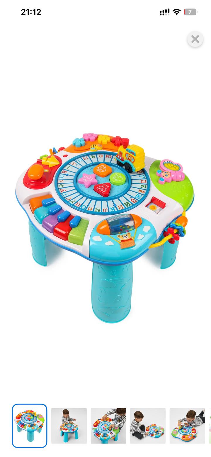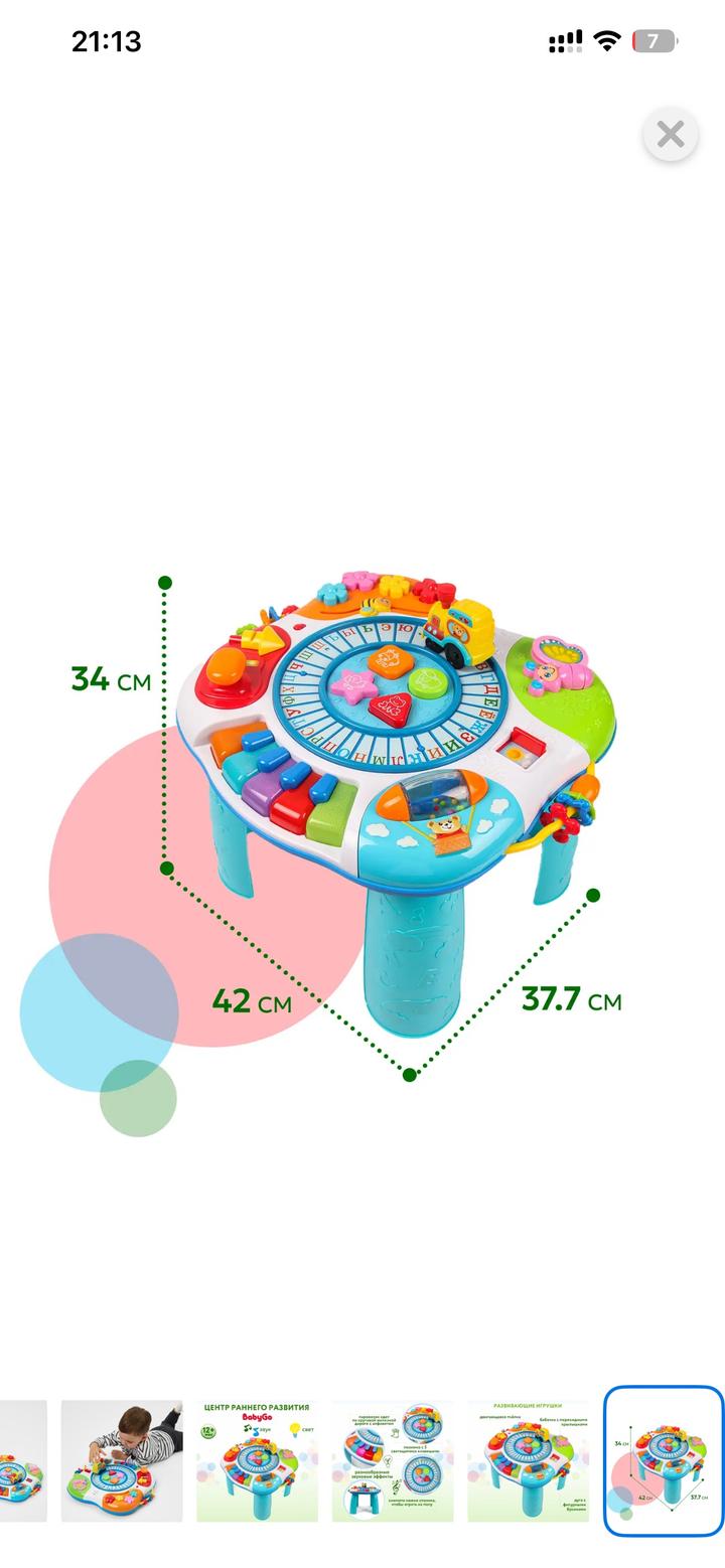 Центр раннего развития BabyGo Развивающий музыкальный столик BabyGo - такой интересный! Малыш с удовольствием будет играть на пианино и изучать интерактивные игрушки. Паровозик едет по круговой железной дороге с алфавитом. Пианино с 5 светящимися клавишами. Разнообразные звуковые эффекты. Развивающие игрушки: бабочка с перекидными крылышками, дуга с фигурными бусинами, двигающаяся пчёлка. Снимите ножки столика, чтобы играть на полу. Артикул: 551988