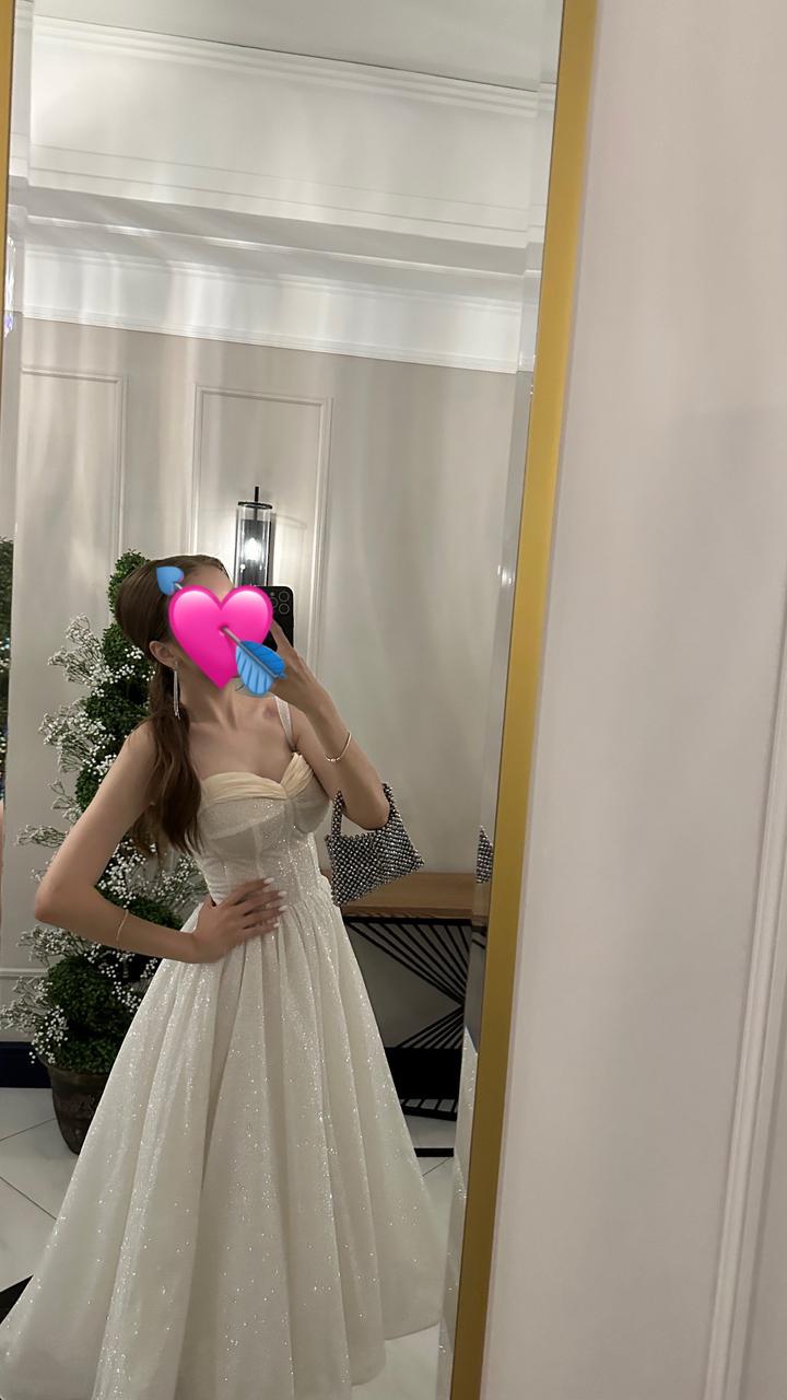 Одевала всего 1 раз, покупала за 110 тыс. Просто так стоит, поэтому хочу продать 🥹 Очень нежное, красивое платье. У меня рост 173-175 примерно, вес 53. Ношу размер S Артикул: 552010
